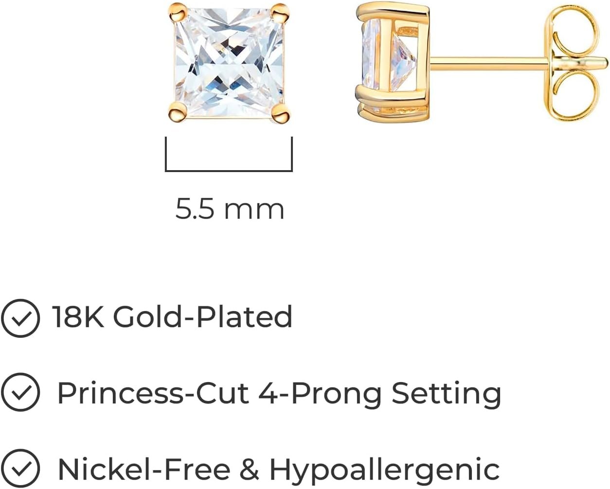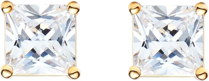 Amazon Essentials Plated Sterling Silver Cubic Zirconia Stud Earrings (Round & Princess)