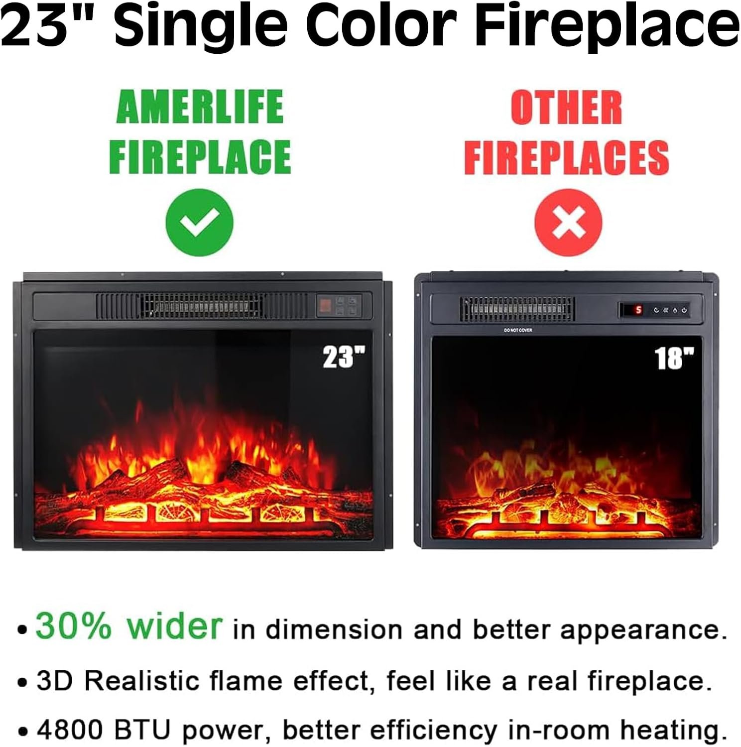【Electric Fireplace】 An updated 23″ plug-in electrical fireplace was included. The updated 23″ electrical fireplace has a new appearance, wider dimension, and high efficiency to make the room warm faster. 3D Realistic flame effect with glowing log and ember bed features operated with or without heat.