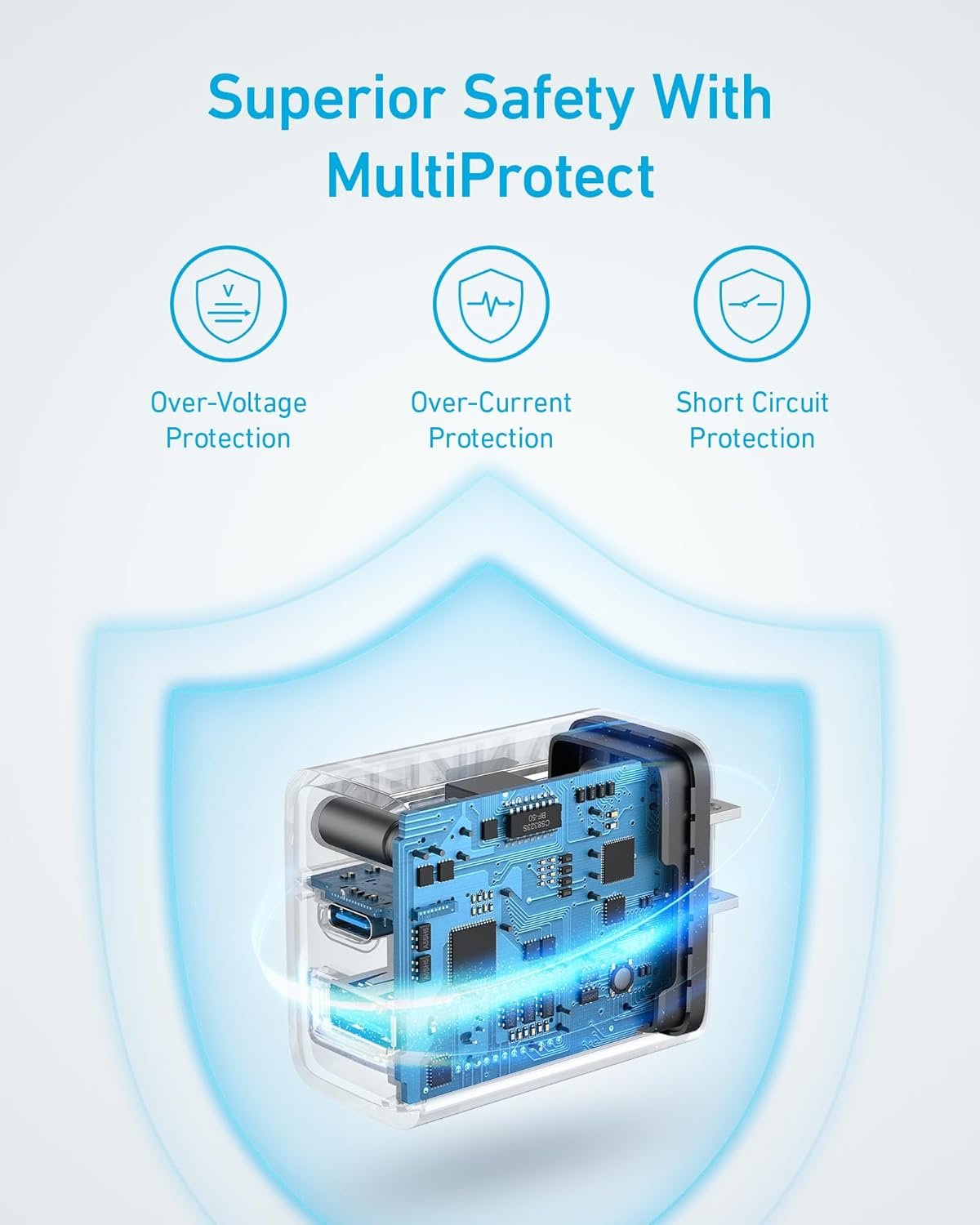 Safety First: Rest easy knowing that Anker’s MultiProtect safety system offers comprehensive protection for your devices, giving you peace of mind while charging.