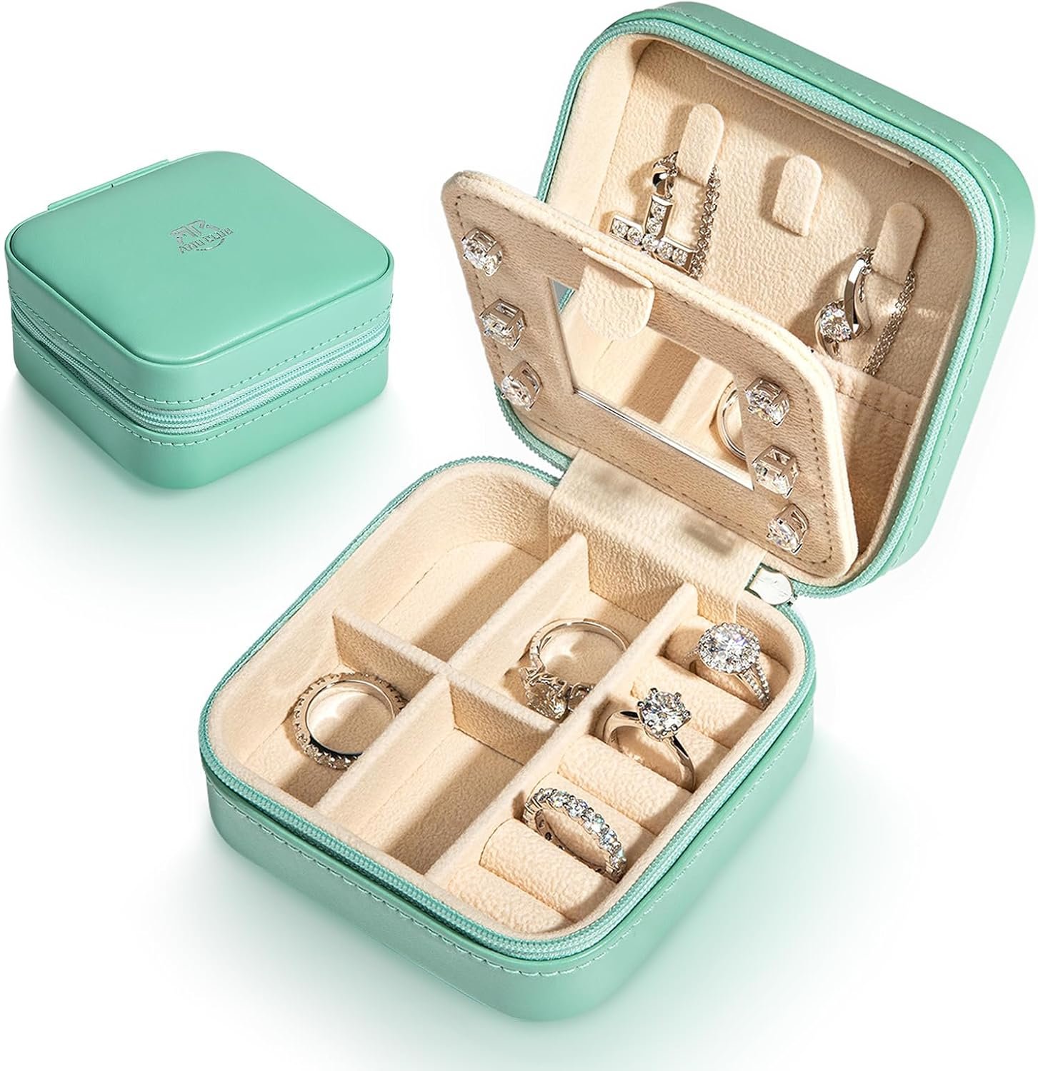 AnuClub Small Jewelry Box, Travel Jewelry Organizer Boxes for Women Portable PU Leather Jewellery Storage Case with Mirror for Earring Ring Necklace