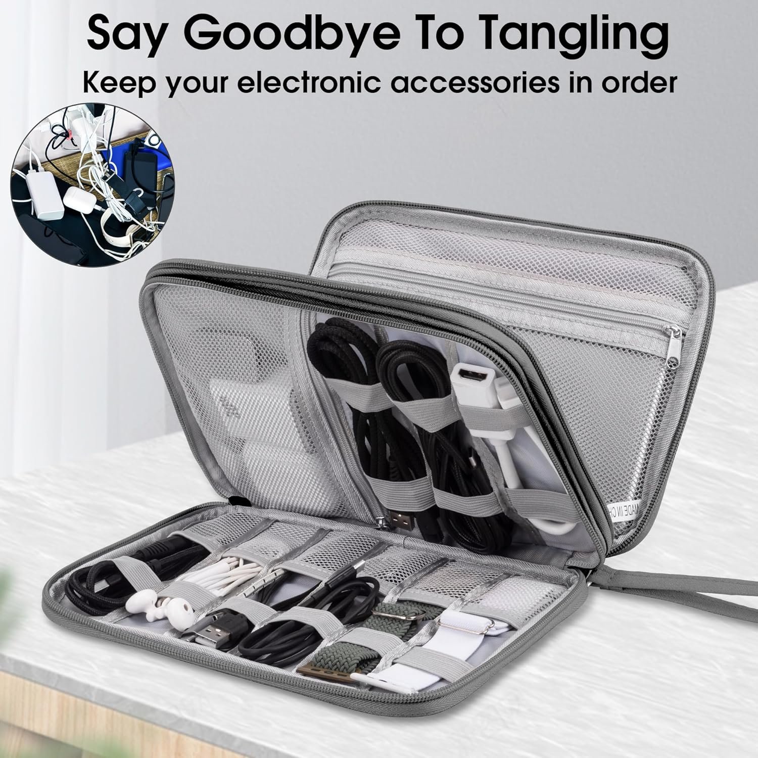 [Double Layers Design]-The electronics storage bag has 2 layers interior compartment with enough space to take in your cords, cables, USB drive, cellphone, charger, mouse, flash drive, and other accessories.