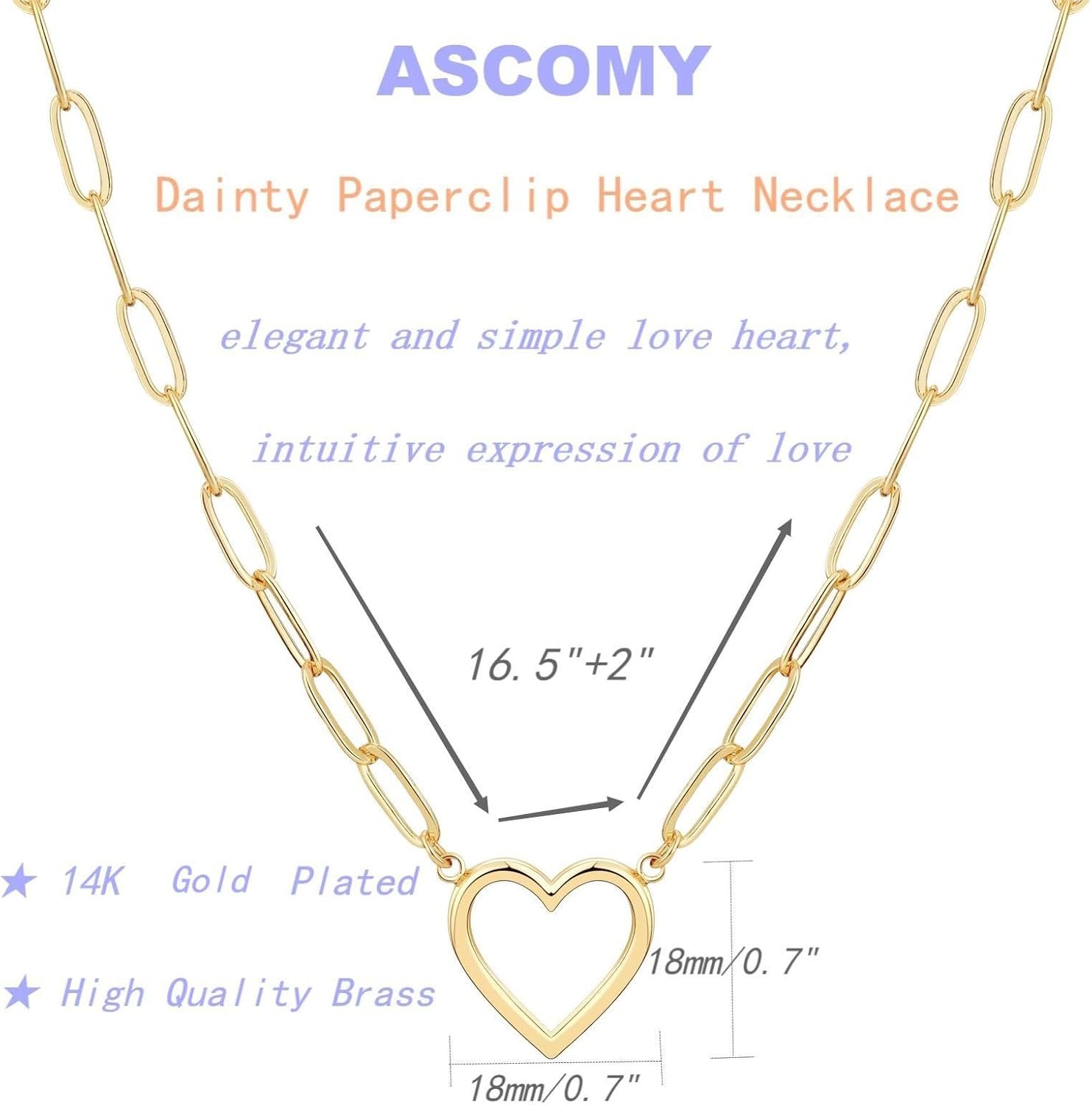 ASCOMY Dainty Gold Necklace for Women 14K Gold Plated Necklaces for Her Delicate Love Heart Necklace Heart Pendant Necklace Cute Necklaces Festival Jewelry Gift for Women