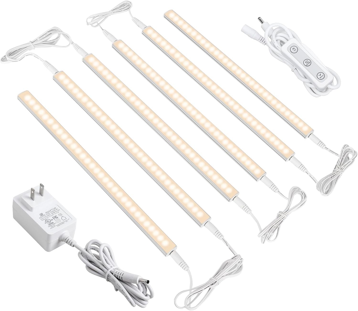 ASOKO Dimmable Led Under Cabinet Lighting for Kitchen – 6 Pcs 12 inches Linkable Led Counter Light Bars, Led Closet Light Warm White 2700K,DC24V 1320Lumens,18W Led Shelf Lighting (ETL Plug)