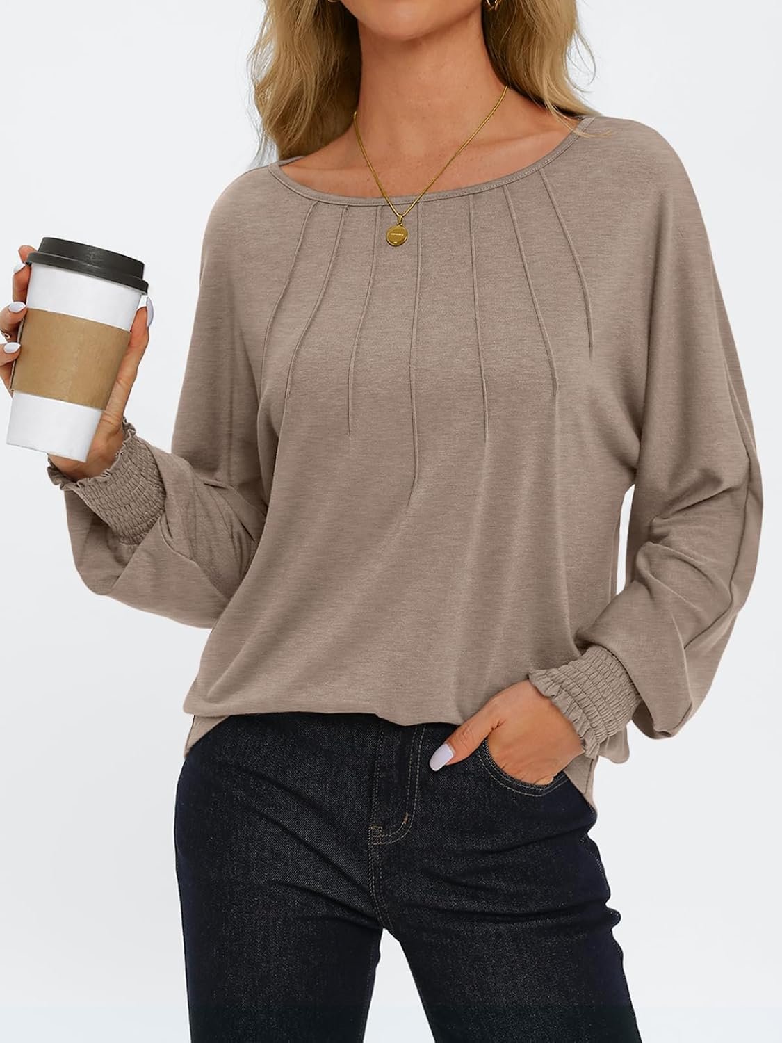 AUTOMET Womens Fall Fashion Long Sleeve Shirts Fall Tops Pleated Shirts Casual Loose Dressy Basic Trendy Clothes 2024