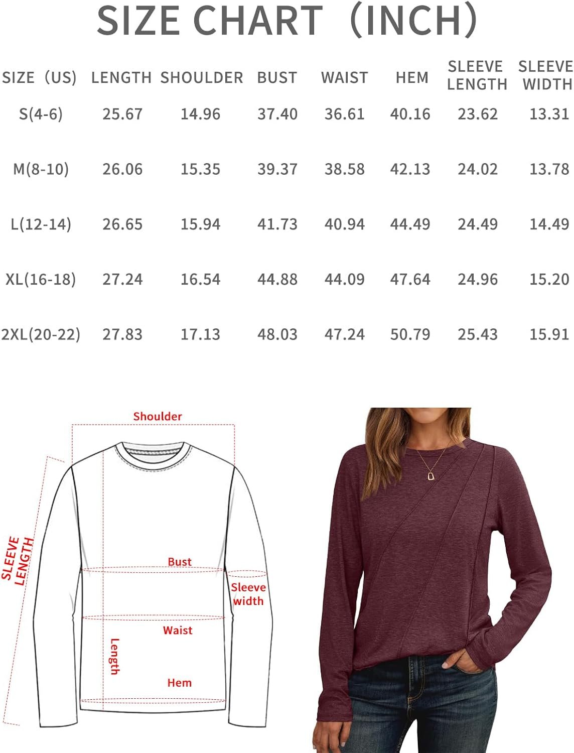 AUTOMET Womens Long Sleeve Shirts Pleated Crew Neck Casual Fall Fashion Tops Loose Fit Lightweight Girls Outfits Clothes