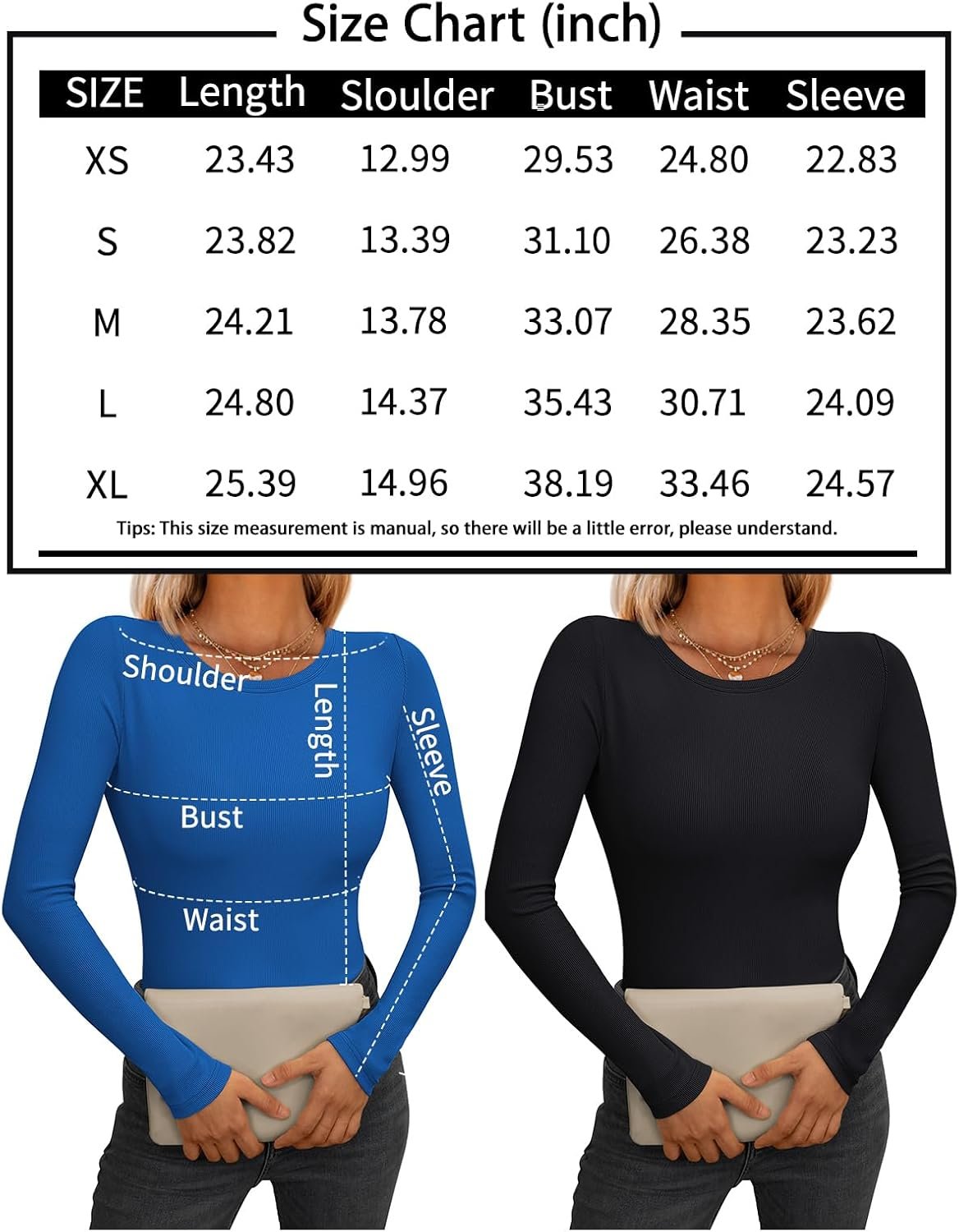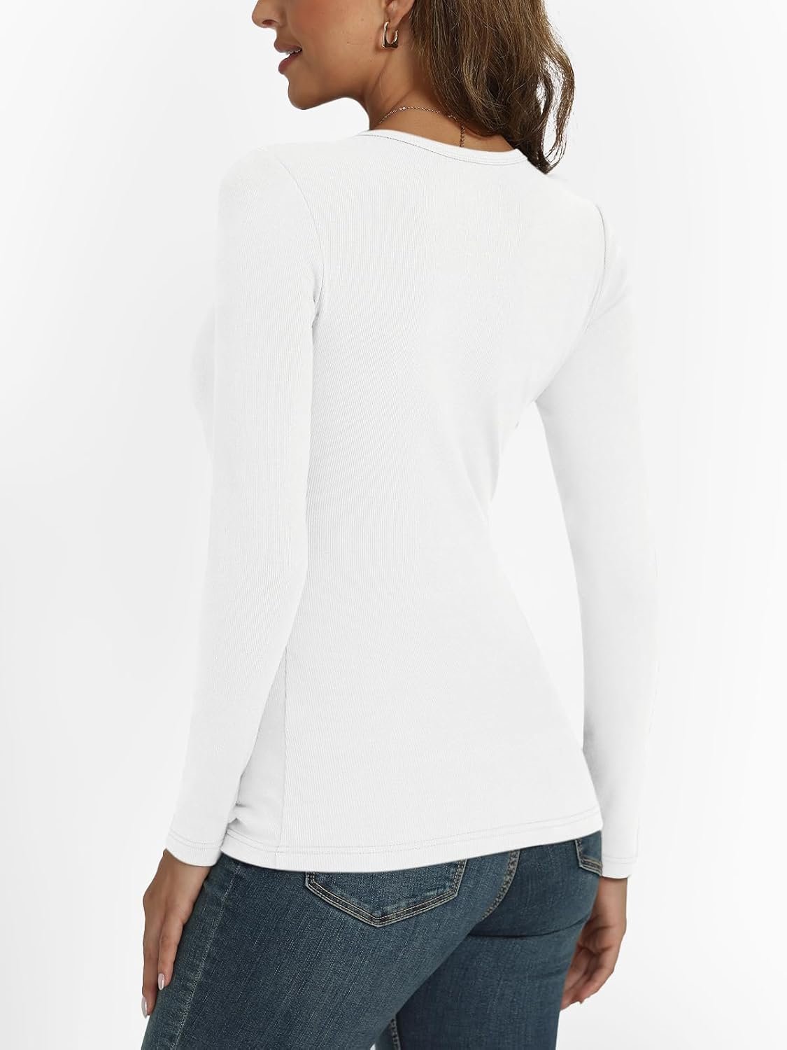 AUTOMET Womens Ribbed Shirts Crewneck Fitted Tops Casual Underscrubs Layer Slim Basic T-Shirts