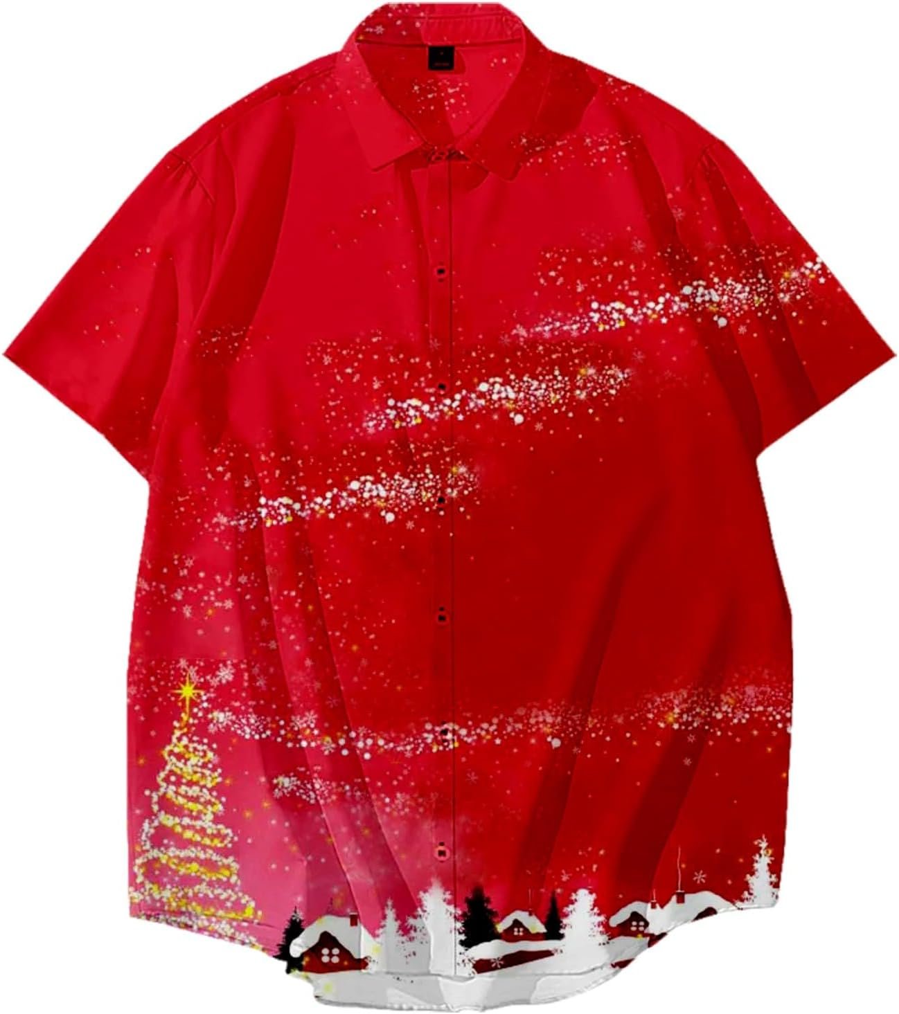 Big and Tall Shirts for Men 2024 Long Sleeve Festive Party Theme Dress Shirt Santa Printed Vintage Tops