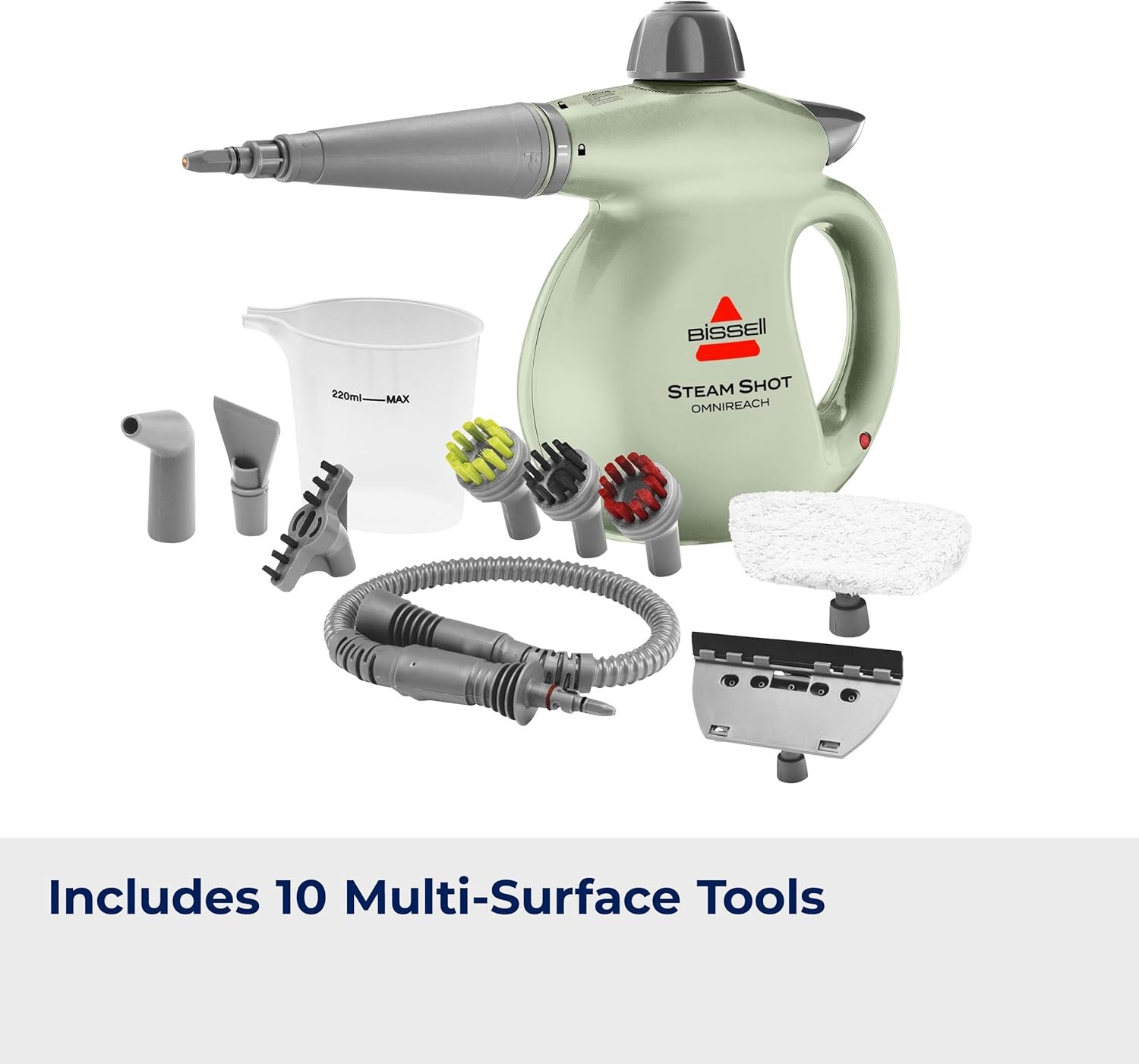 Apply the natural cleaning and sanitizing power of steam with BISSELL® Steam Shot™ OmniReach™ handheld steam cleaner. This popular lightweight powerhouse is now better than ever, with improvements like a cap that indicates pressure and steam readiness. Steam cleans on hard surfaces around your home, and easily steam clean grout, shower doors, ovens, and much more with the ten specialty cleaning tools, including a fabric steamer, window cleaner tools and an extension wand for extended range. Steam Shot™ OmniReach™ handheld steam cleaner delivers a 100% chemical-free clean that uses only water, making it safe for use around kids and pets when used as directed. Every purchase makes it possible for BISSELL to continue our support of BISSELL Pet Foundation® and its mission of saving pets in need. Since 2011, BISSELL has donated over $26 million in support of BISSELL Pet Foundation®. When you purchase a BISSELL® product, you help save pets, too. Our products are engineered to clean even the toughest messes so pets can stay at home and out of shelters.