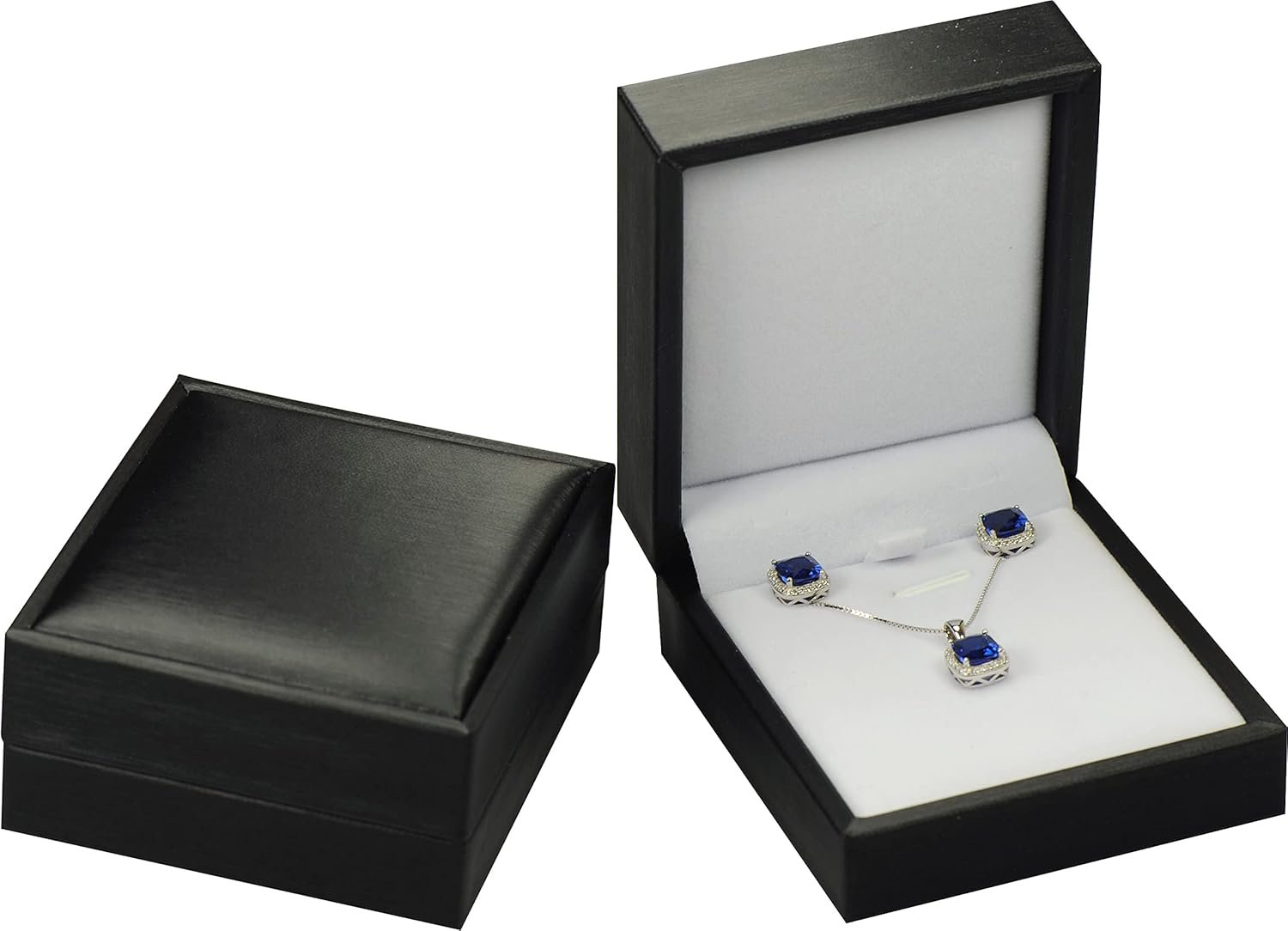 We are professional jewelry packaging wholesaler in US and Canada. We guarantee each box and display purchased from our store stands for the best quality in the market. These necklace pendant earring set display boxes are made with high quality exterior and interior materials . We use solid construction mold making sure the boxes are not easily broken. The beautiful white velvet interior makes the necklace boxes matching every jewelry pieces. The premium rich exterior material makes them a soft touch feeling. Quality jewelry boxes are all about details, we take care of all details of our products.