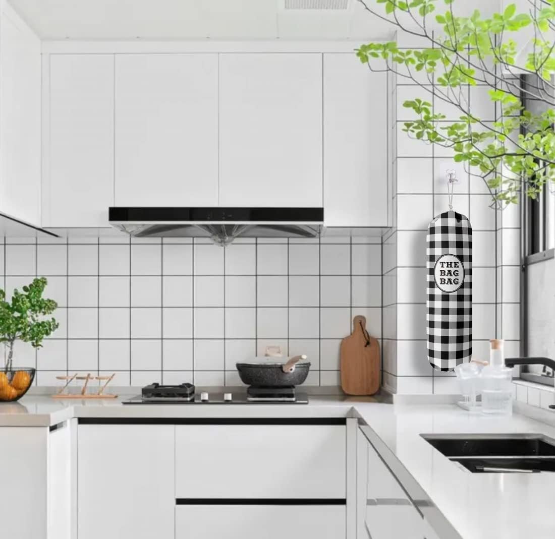 Black White Buffalo Check Plaid Grocery Bags Holder Organizer For Shopping Bags,Wall Mount Plastic Bags Storage Container Dispensers, Kitchen Housewarming Gifts For Women Family Friends Grandma Mom