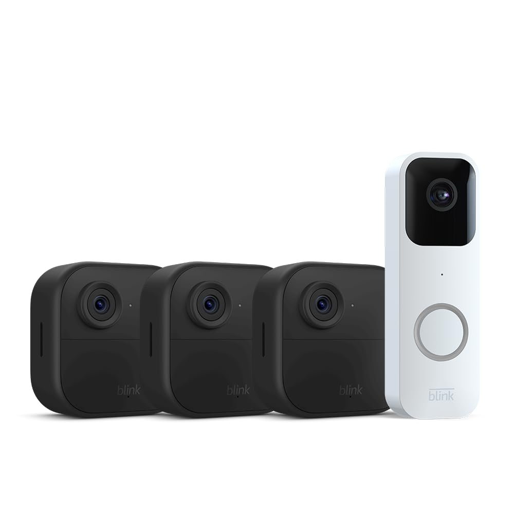 Blink Video Doorbell + 3 Outdoor 4 smart security cameras (4th Gen) with Sync Module 2 | Two-year battery life, motion detection, two-way audio, HD video, Works with Alexa
