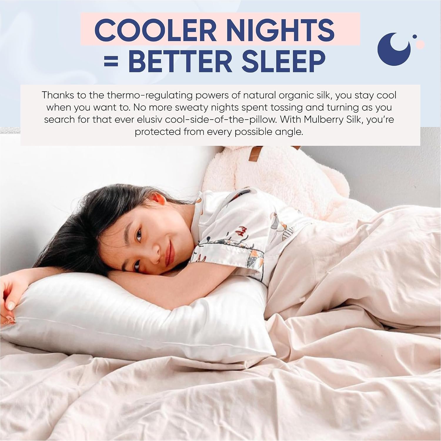 BETTER & COOLER SLEEP: The temperature regulating properties of the Blissy silk pillowcase allow you to keep cool at all times during the night without the discomfort associated with fluctuating temperature and the constant tossing and turning for a restful night sleep.