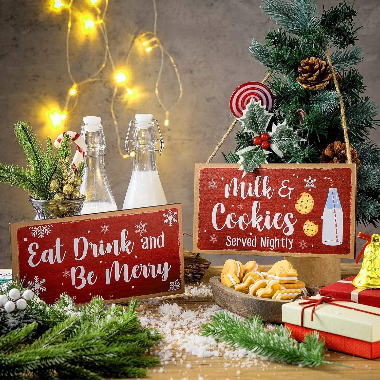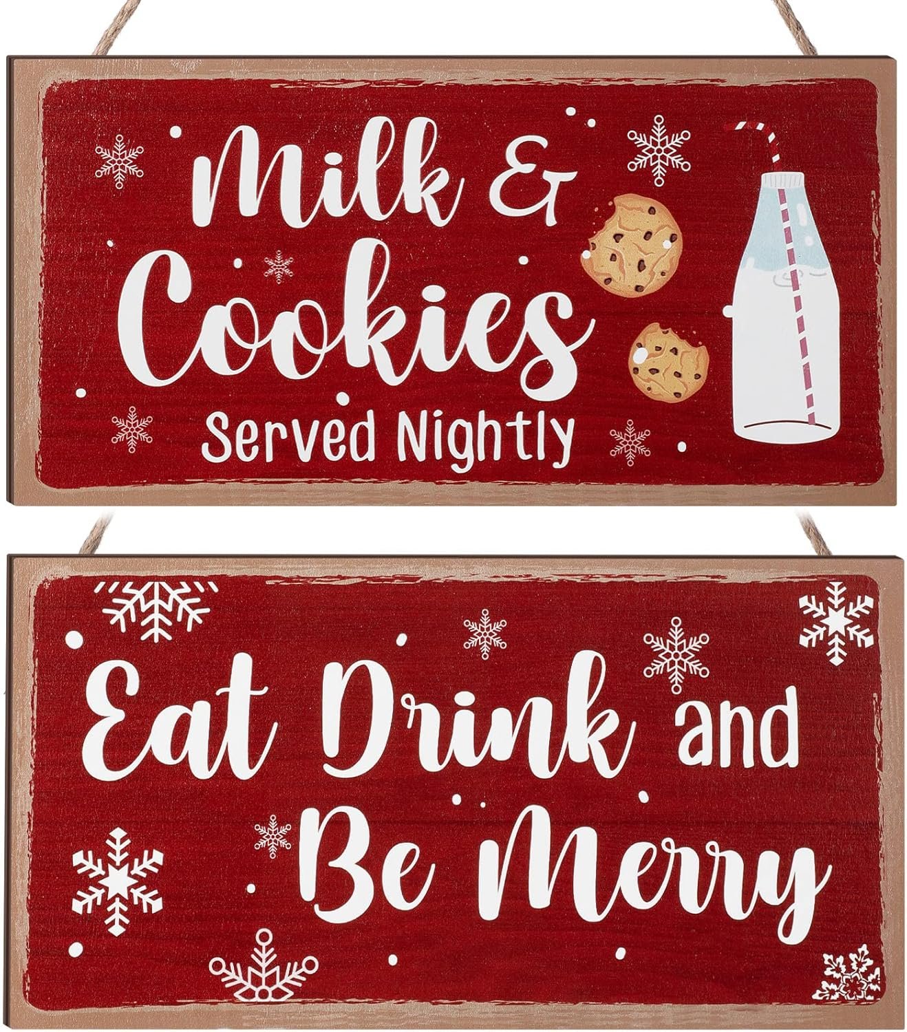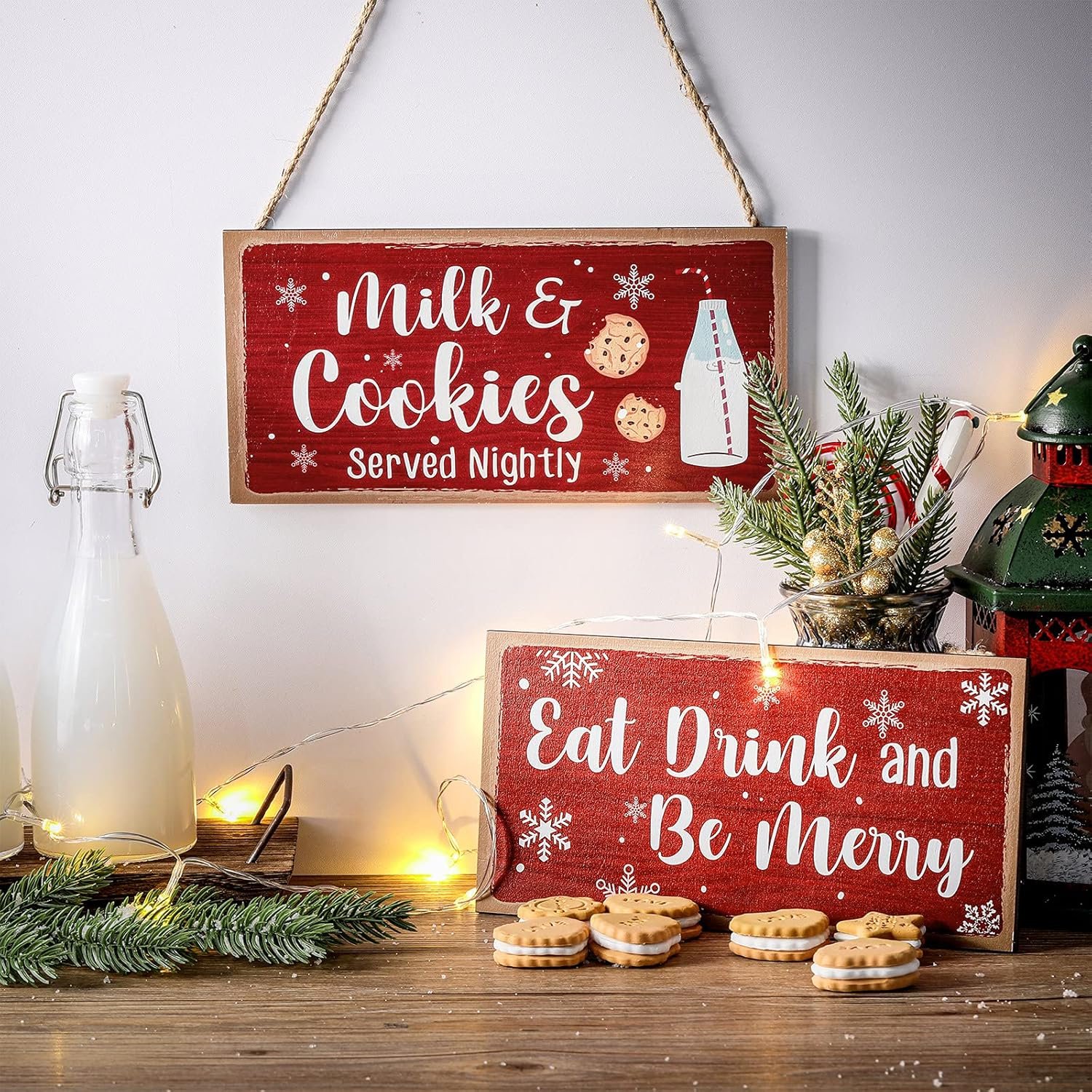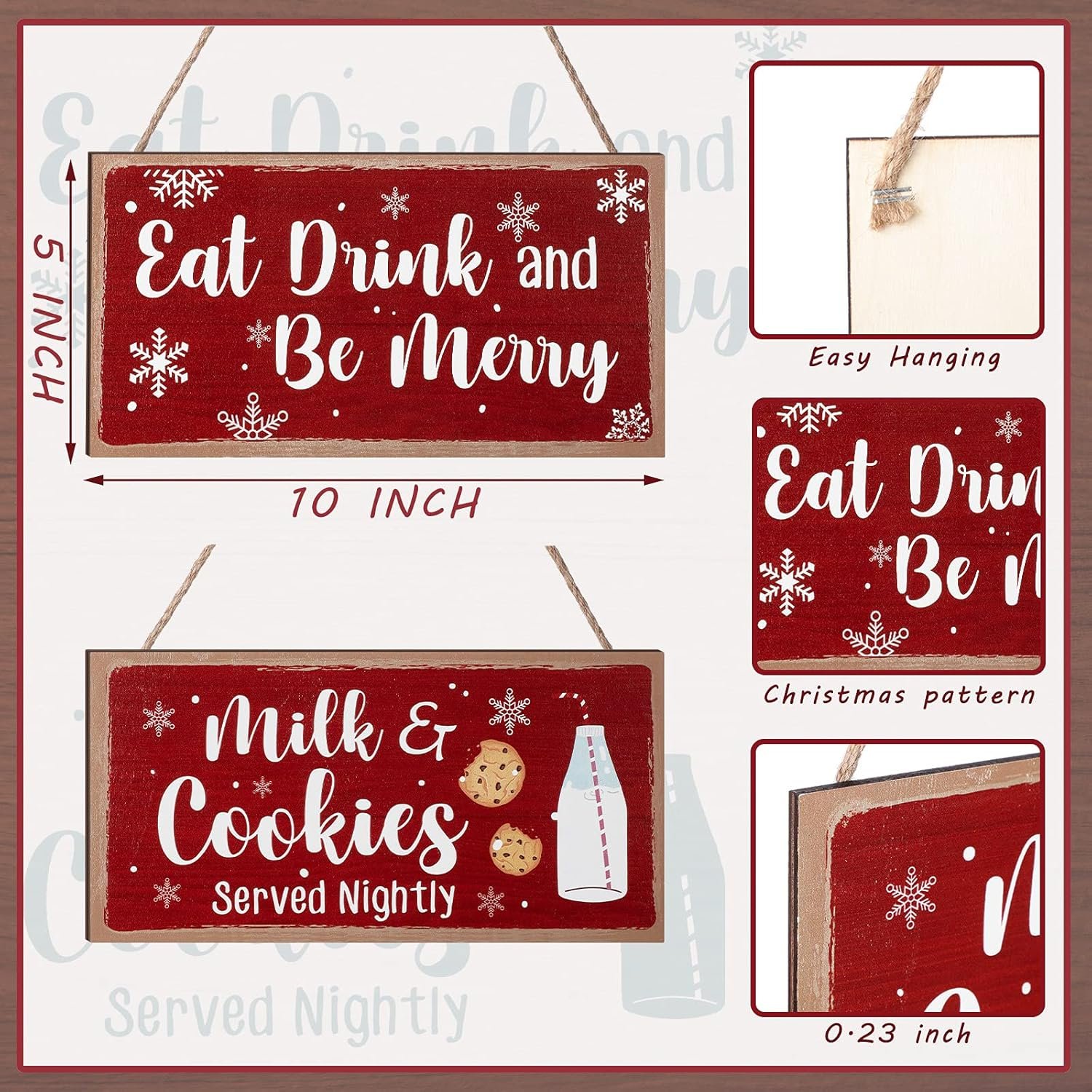 Blulu Christmas Hanging Wooden Sign Eat Drink and Be Merry Sign Milk and Cookies Sign Merry Christmas Wall Decor Rustic Gingerbread Decor for Kitchen, Coffee Bar, Indoor or Outdoor Decorations