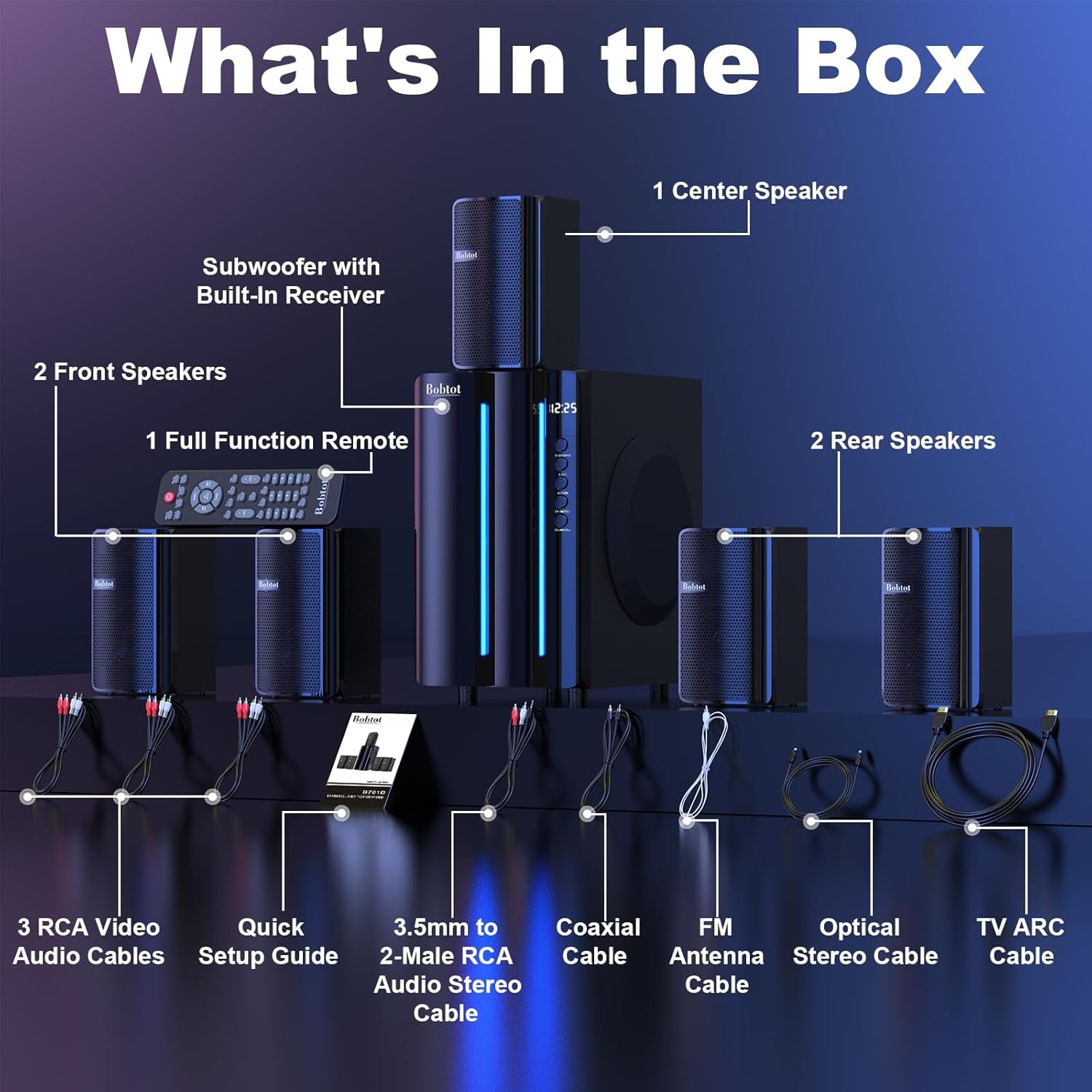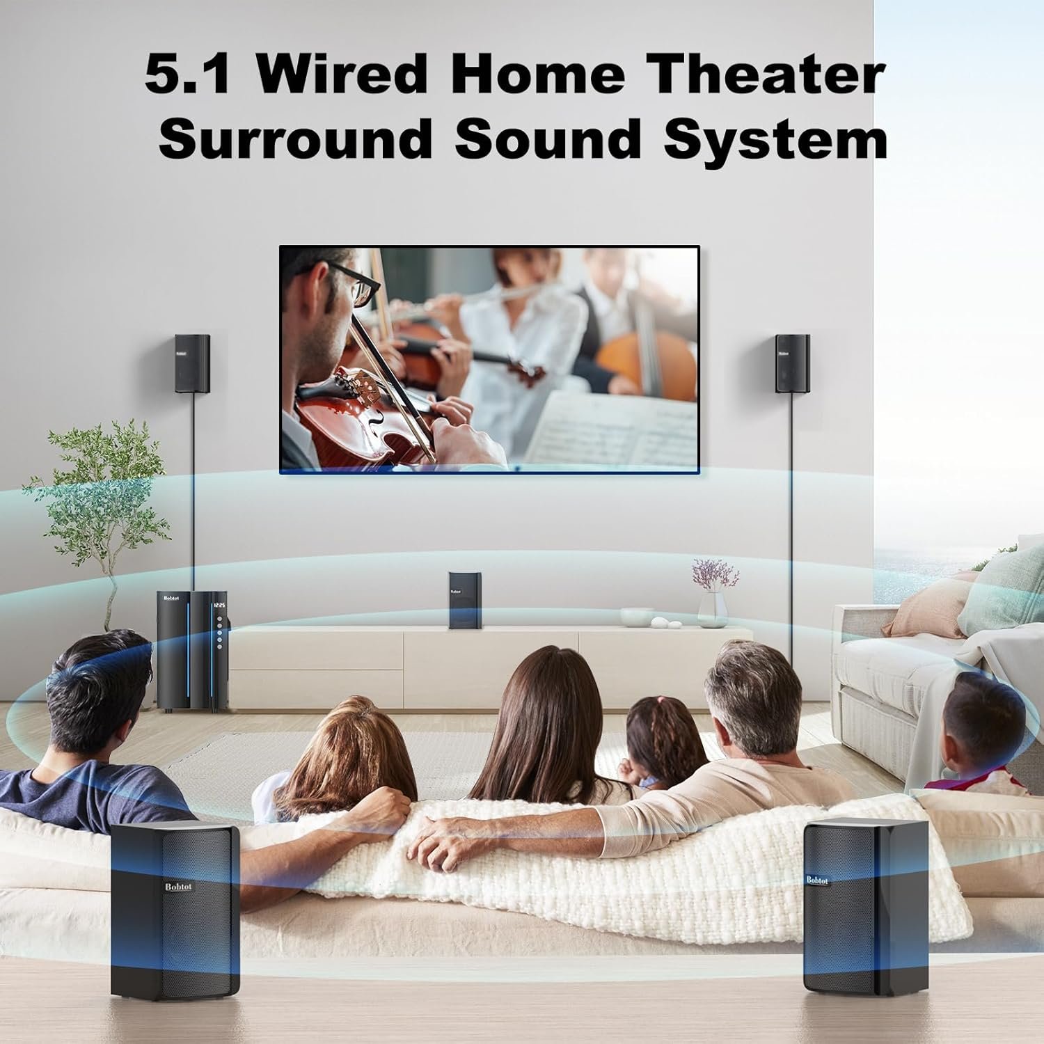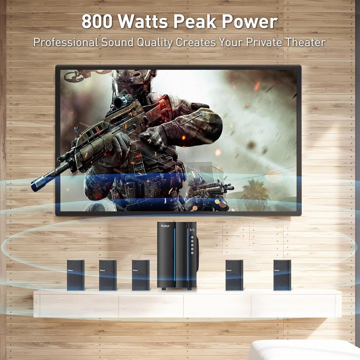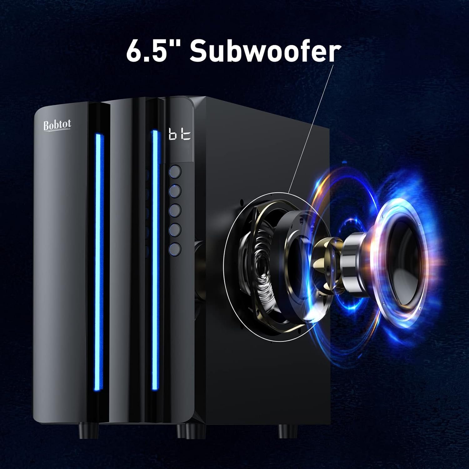 Bobtot Surround Sound Systems Home Theater System – 800 Watts Peak Power 6.5″ Subwoofer 5.1/2.1 Wired Stereo Speakers Strong Bass with HDMI ARC Optical AUX Bluetooth Input
