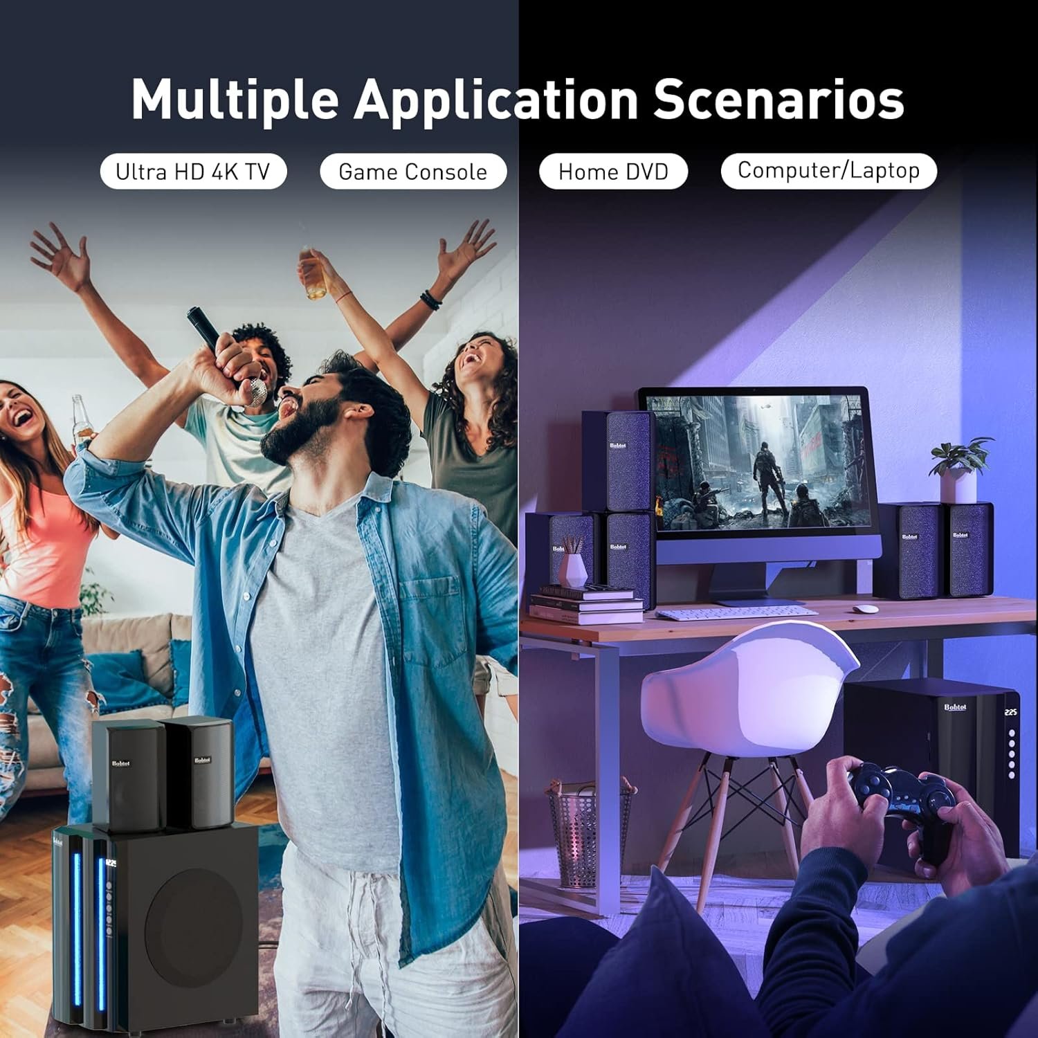 Wide Compatibility – Easily plug and play, speakers are widely used for numerous scenarios such as Ultra HD 4K TV, game consoles, home DVD, computers, laptops, Projector. It’s very suitable for watching movies, football games, partying, and e-sports games with friends at home. It’s an ideal gift for family or friends.