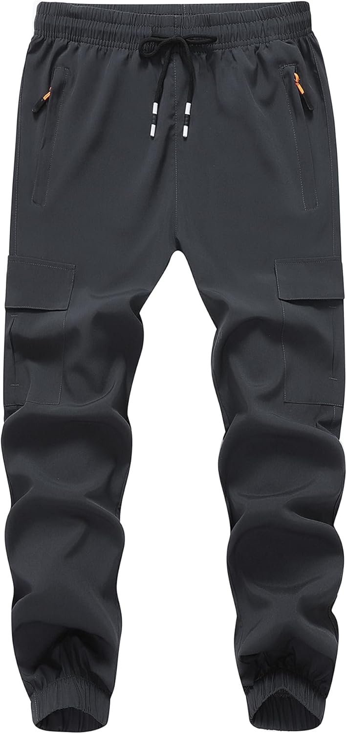 Boy’s Cargo Joggers Pants Youth Quick Dry Hiking Lightweight Pants for Sports Outdoor with Zipper Pockets