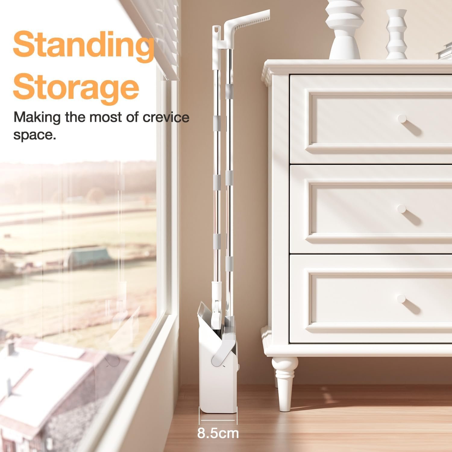 Dense Sweeping Silk to Clean Low Crevices:Eco-friendly high-strength PET filament for brooms do not split, break, fall or raise dust, which can be used to clean hair, pet hair fall and household waste. The broom handle can be bent 180° to reach deep into crevices and corners such as the bottom of sofa, closet, table bottom dirt without any problem.Works perfectly for multi-surface.