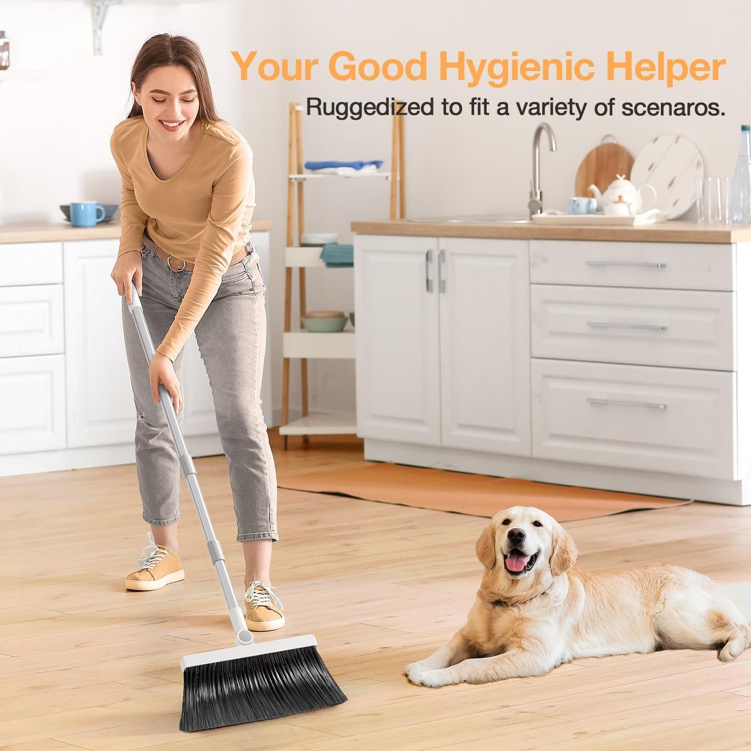Pet Hair Cleanup without Bending Over:Our broom with dust pan combo set for pet and human hair cleanup problems in the dustpan designed double scraping teeth, broom scrape clean, no longer need to bend over to deal with garbage, lumbar spine health, not dirty hands, one-step solution to the anxiety of hair entanglement.