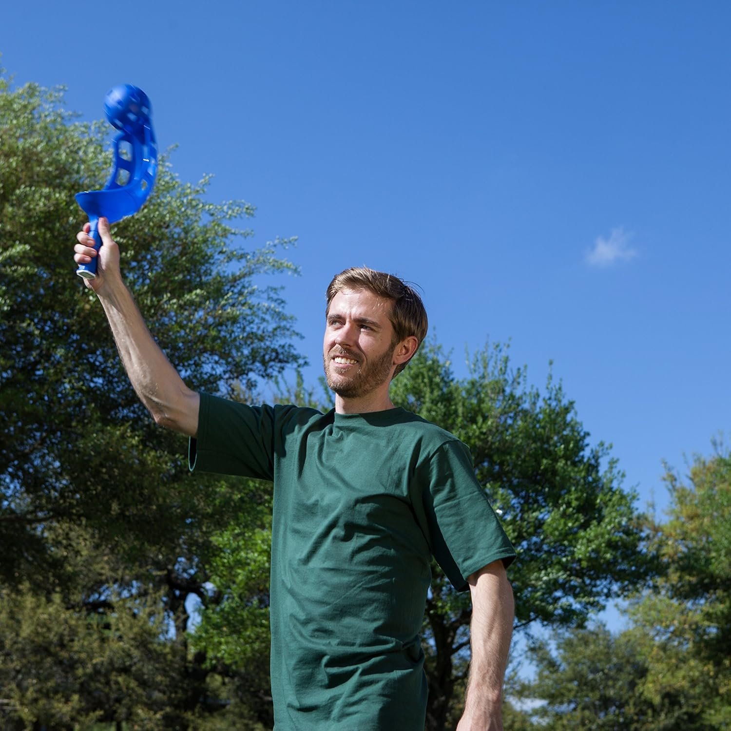 TOP FLIGHT PERFORATED BALLS – Each set includes color coordinated high flight and long air time hollow plastic balls which can be easily launched and caught in mid-air with the curved trackball scoop.