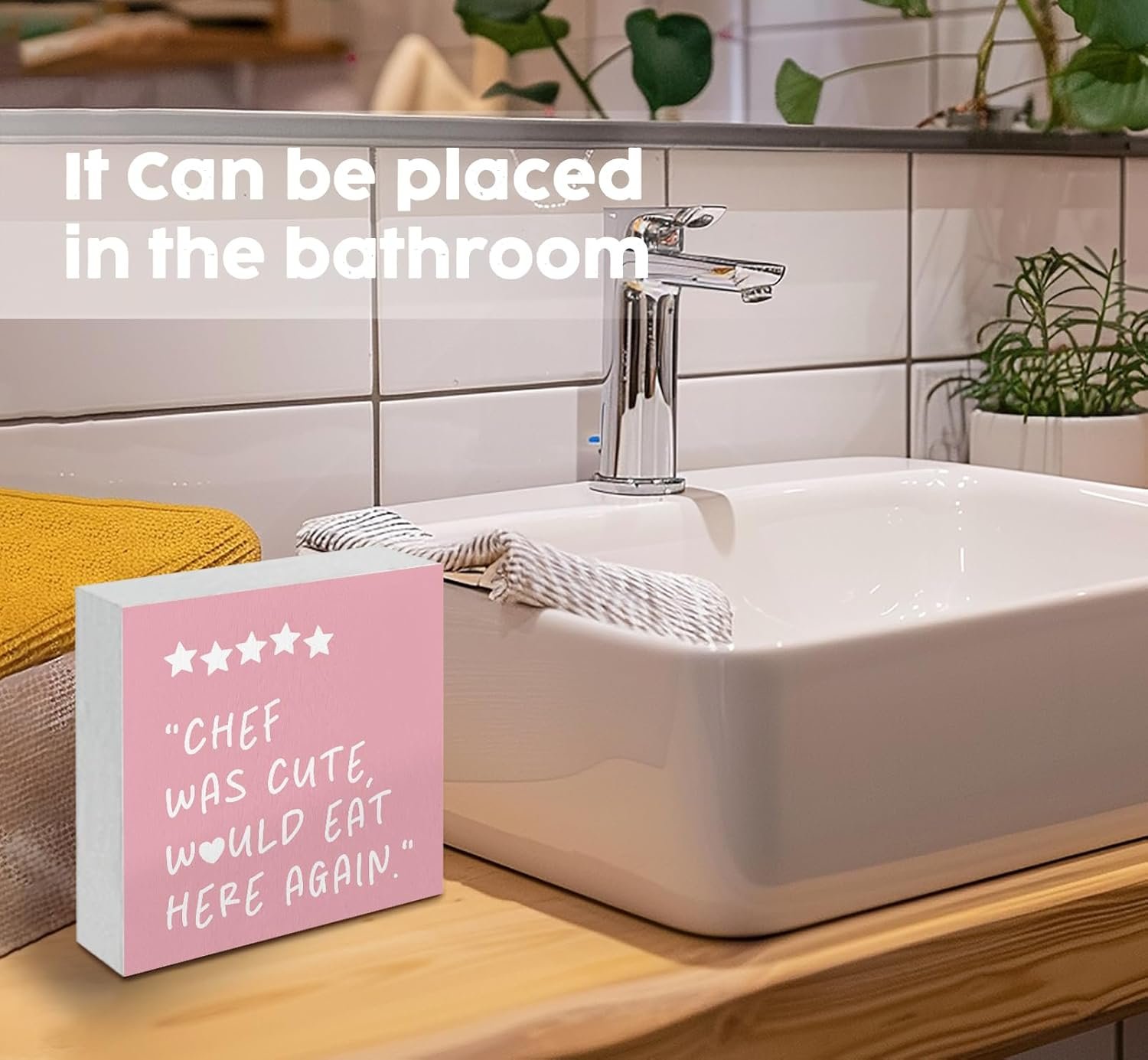 Chef Was Cute Would Eat Here Again Sign Pink, Pink Kitchen Home Decor Sign, Cute Preppy Kitchen Decor Wood Sign Home Decor for Girly Dining Room Restaurant