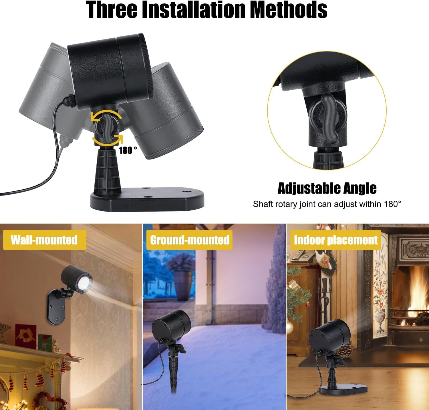 Outdoor Indoor Showing: Waterproof light body not only suitable for casting for the house, trees, flowers, and plants; but also great for home, bedroom, living room, decorate your Halloween, Thanksgiving, Christmas, New Year, birthday party, wedding with only one snow projector lights