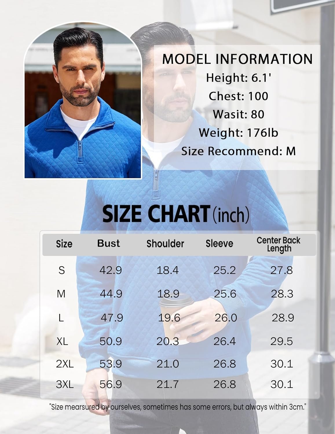 COOFANDY Mens Quarter Zip Pullover Quilted Sweatshirt Knit Long Sleeve Mock Neck Sweater Polo with Pocket