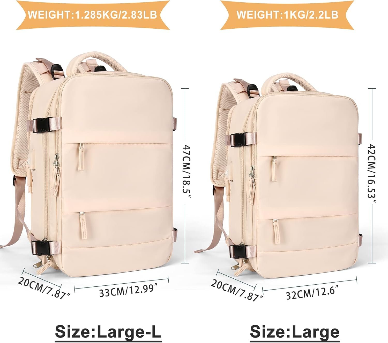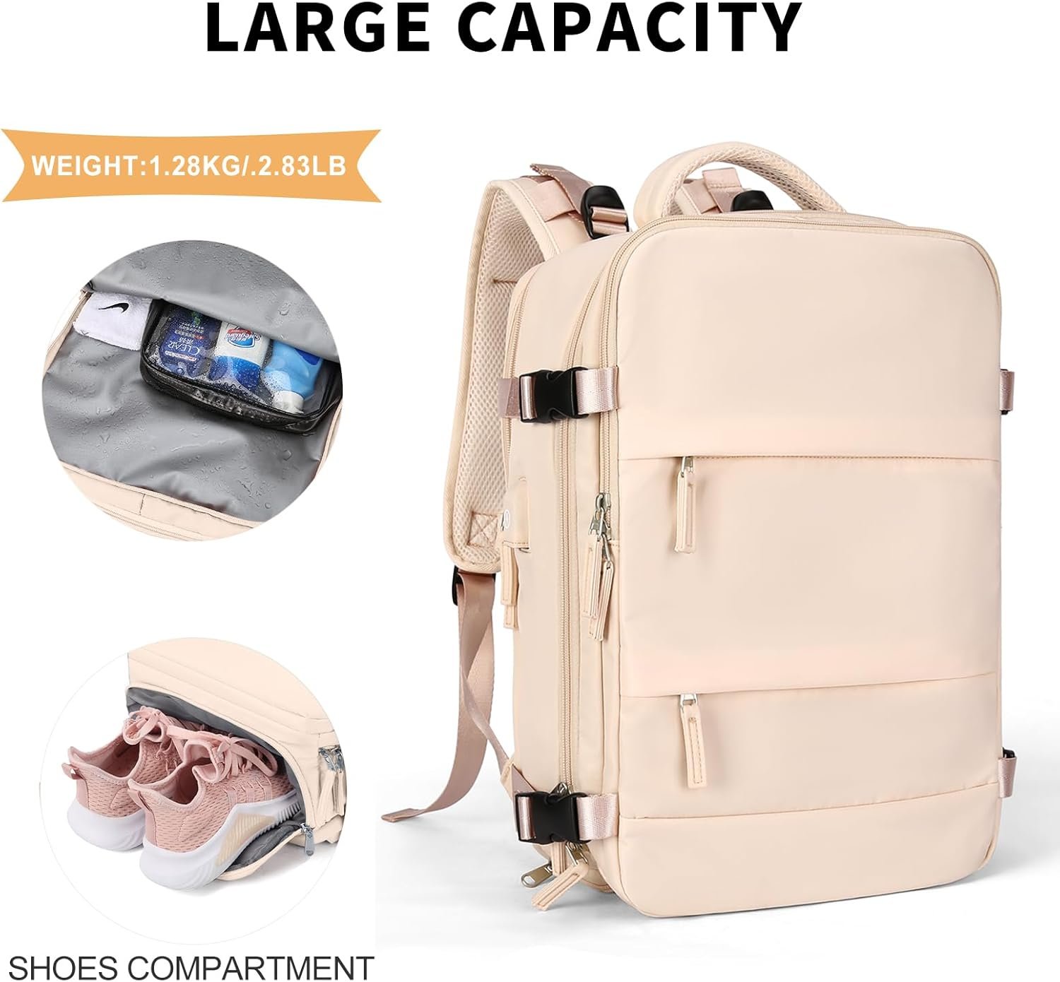 coowoz Large Casual Travel Backpack For Women Men,Carry On Rucksack Flight Approved,Hiking Waterproof Outdoor Sports Daypack Fit 15.6 Inch Laptop Shoes Compartment (Beige)