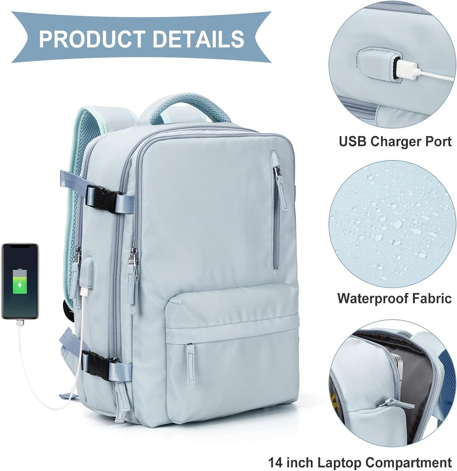 coowoz Travel Backpack For Women Men Airline Approved,Carry On Backpack,Large Hiking Backpack Waterproof Outdoor Sports Rucksack Casual Daypack Fit 15.6 Inch Laptop Backpack Blue College Backpack