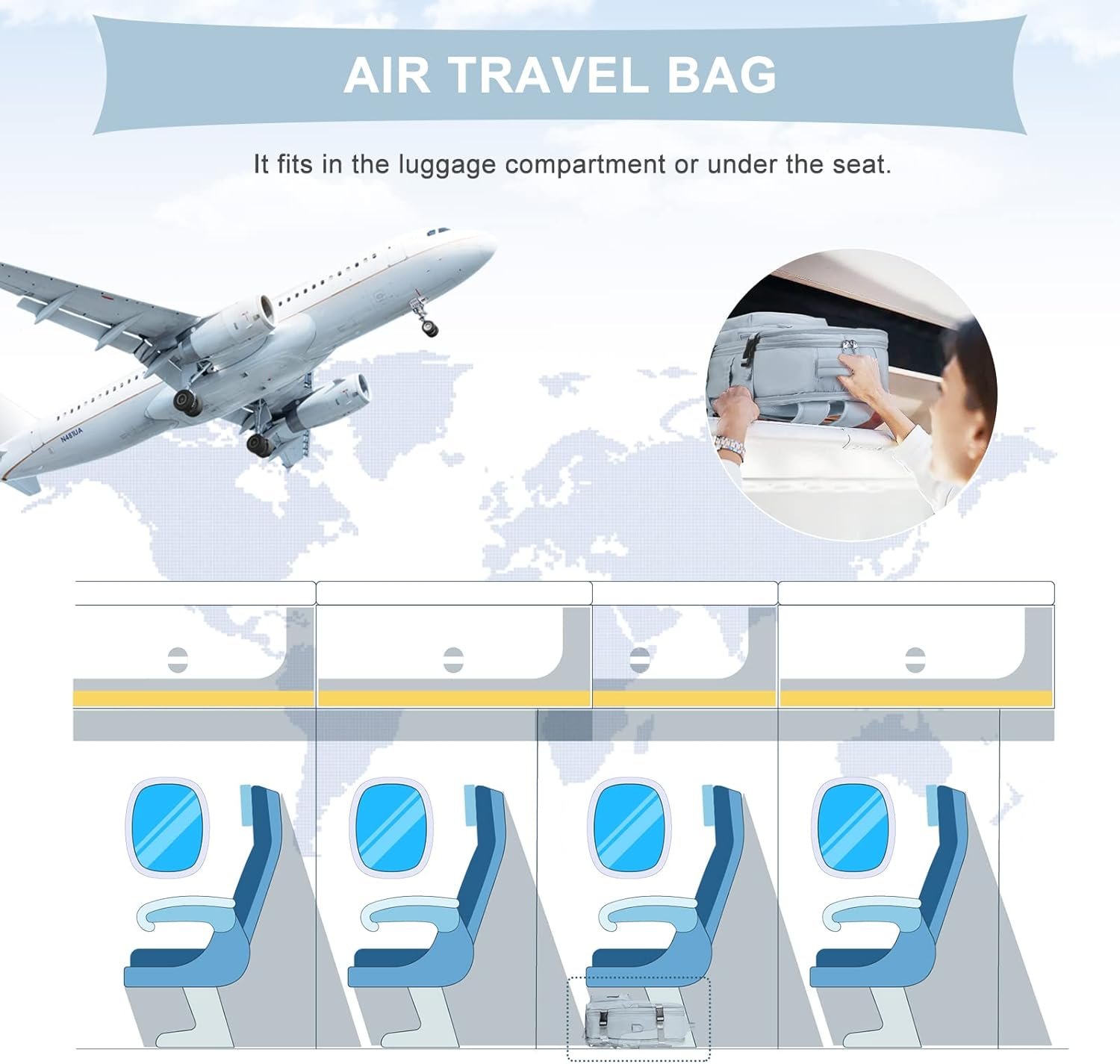 【Separate Shoe Compartment Design & Wet Bag】Main pocket x 3, laptop compartment x 1 (fit for a 14” laptop respectively), and many other pockets for different purposes. The wet bag is made of high density water resistant material can help you to separate dry items and wet items,if you have wet clothes or towel,you can put it in wet bag. A separate shoe compartment can help you carry and keep your shoes better in your travel bag.