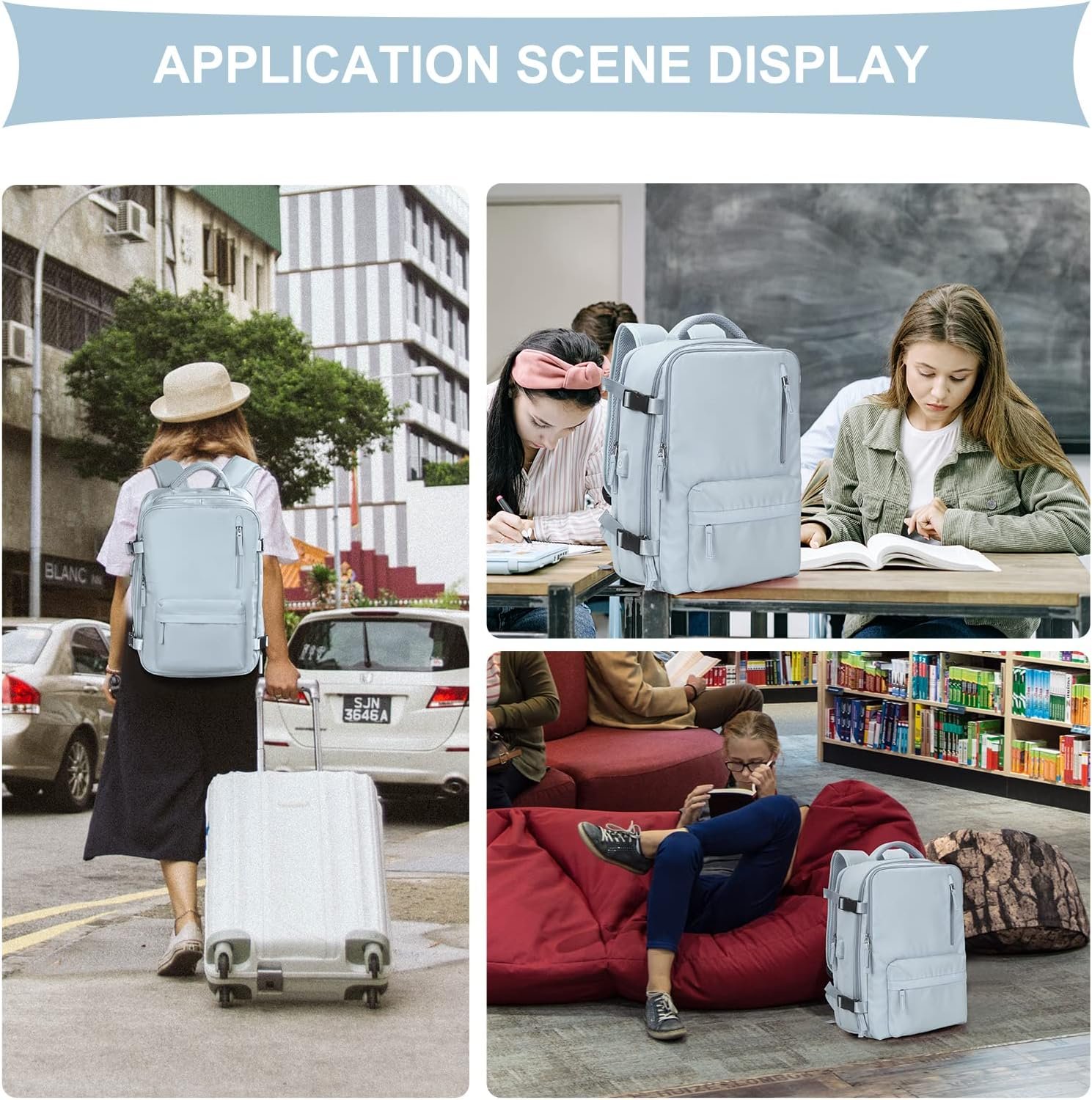 【Large Travel Backpack for women】This backpack is made of waterproof durable polyester, good air permeability and heat dissipation with two padded shoulder straps, offers lightweight carrying and of force reinforcement, relieve the pressure of your shoulders, and keeping cool when you carry it for a long time. And it is tough, firm and does not fade.