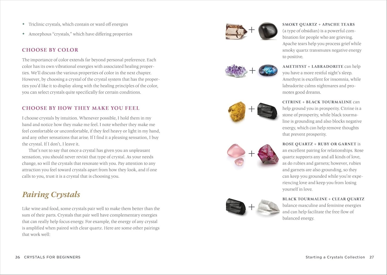 CLEAR INSTRUCTIONS FOR CURATION: Use this crystal book to explore every facet of healing, including how to use different crystals and the top 10 crystals every collection should have.HEALING REMEDIES: Overcome negative emotions and foster positive growth using specific crystal prescriptions, healing mantras, and crystal grids that help you focus energy and intention while balancing your chakra to feel better in your body and be your best self. COMPREHENSIVE CRYSTAL PROFILES: Learn to identify different crystal types with 50 detailed crystal profiles that feature images of both worked and unworked versions.