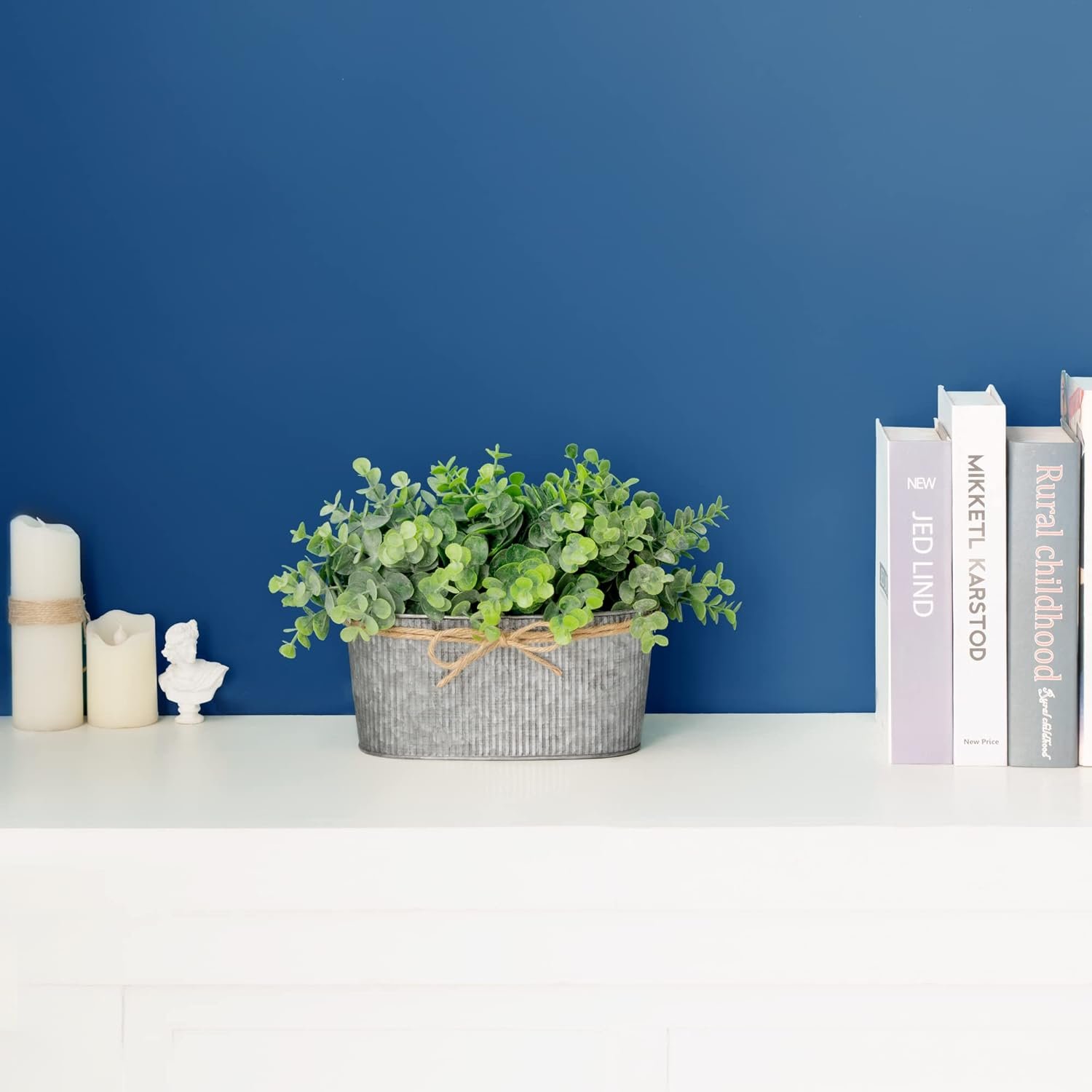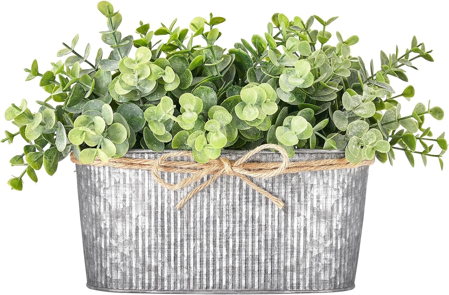 Dahey fake eucalyptus plant with rectangular metal pots is a great artificial plants for home decor indoor.
