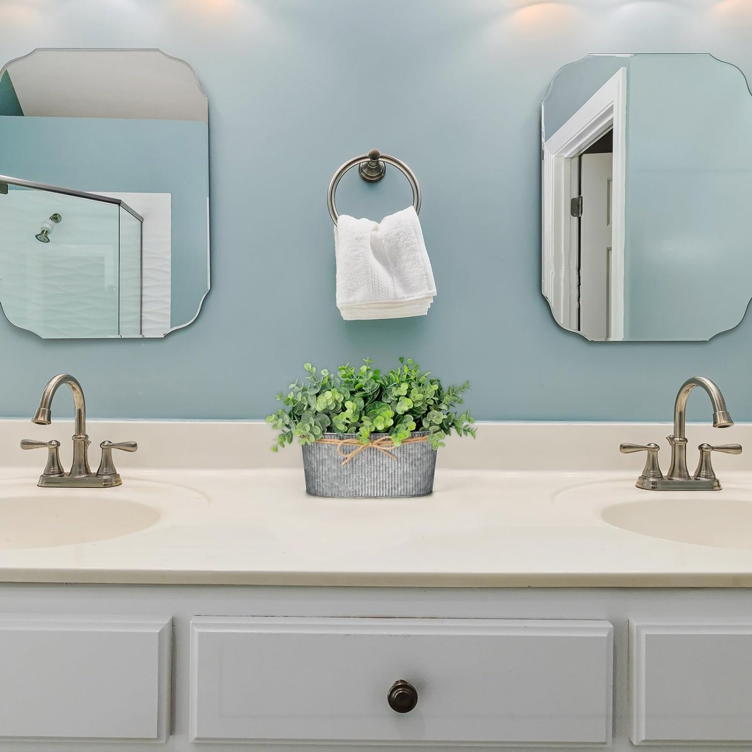 Dahey Artificial Eucalyptus Faux Plants Indoor for Farmhouse Home Decor Fake Potted Plants in Rustic Rectangular Pots Table Centerpiece for Office Bath Living Room Greenery Decor, 7″ L x 4″ H