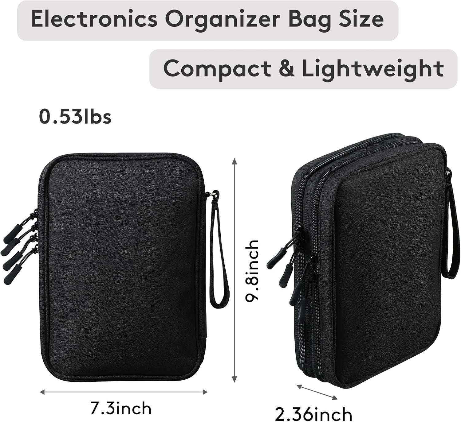 DDgro Travel Electronics Organizer Pouch Bag for Tech Gadgets & Airplane Accessories, for Cables/Cords & Chargers/iPad Mini (Large, Black)