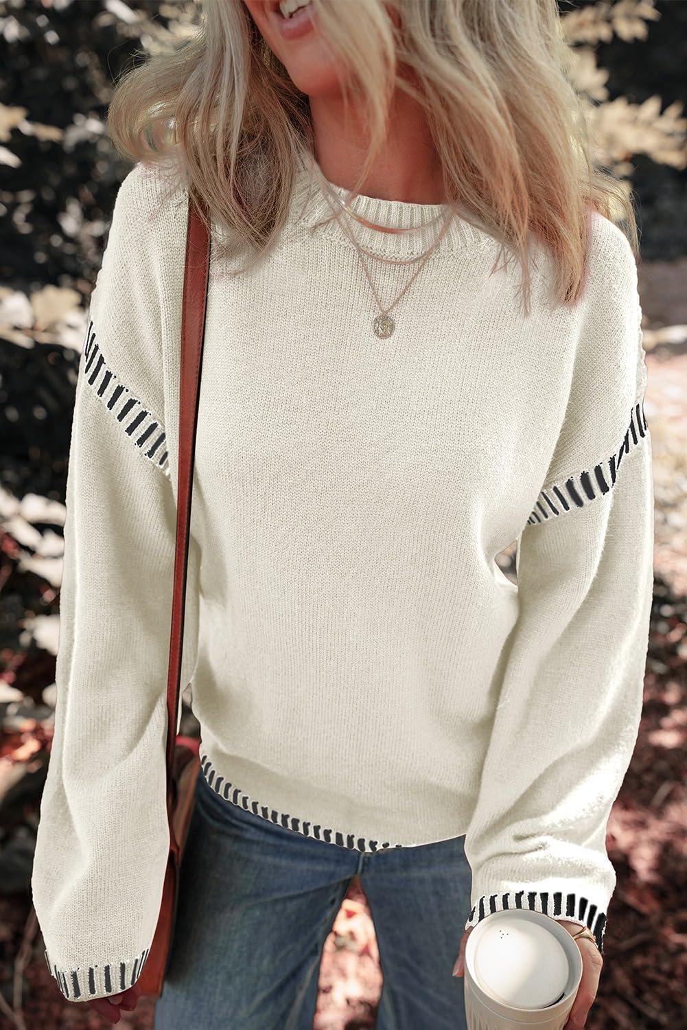 Dokotoo Sweaters for Women Fashion Solid Crewneck Loose Fit Long Sleeve Contrast Cable Knit Pullover Sweater Jumper Tops