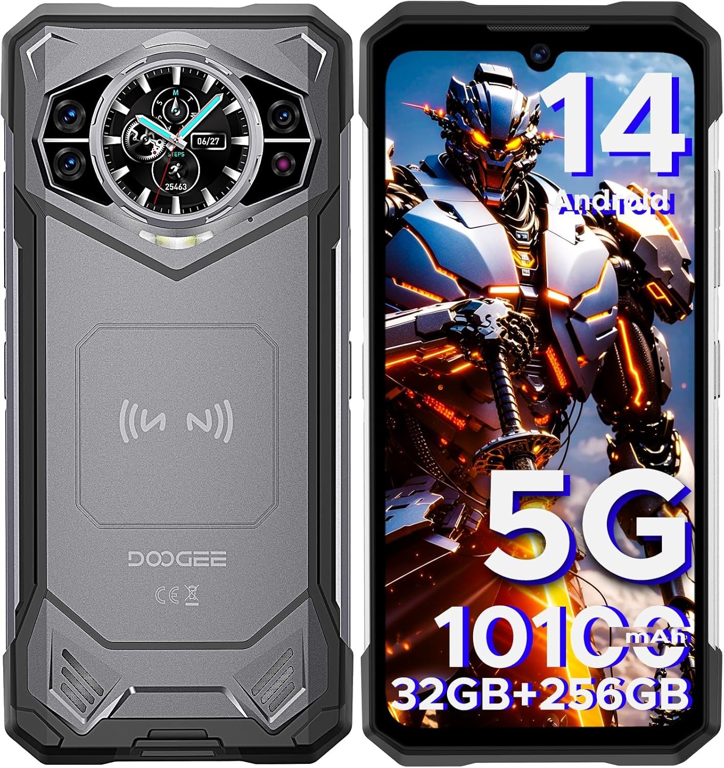 DOOGEE S200 5G Rugged Smartphone with 6.72” FHD+1.32″ Dual Screen,10100mAh/33W Rugged Phone Unlocked,32 GB+256 GB Cell Phone, Android 14,100 MP Camera/Fingerprint ID/Face Unlock/NFC/GPS
