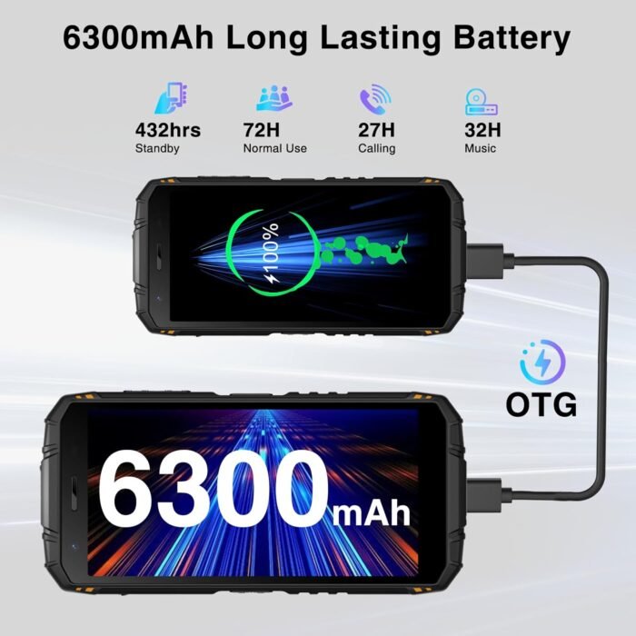 Powerful Battery Life :The DOGGEE S41 PLUS rugged phone equipped with a massive 6300mAh battery, this unlocked Android phone offers up to 15 days of standby time, ensuring you stay connected even in remote locations. With 2-3 days of normal use and 29 hours of calling time, you can rely on this rugged smartphone to keep up with your busy lifestyle. Say goodbye to constantly searching for an outlet and experience the convenience of long-lasting battery life with the DOGGEE S41 PLUS rugged smartphone.