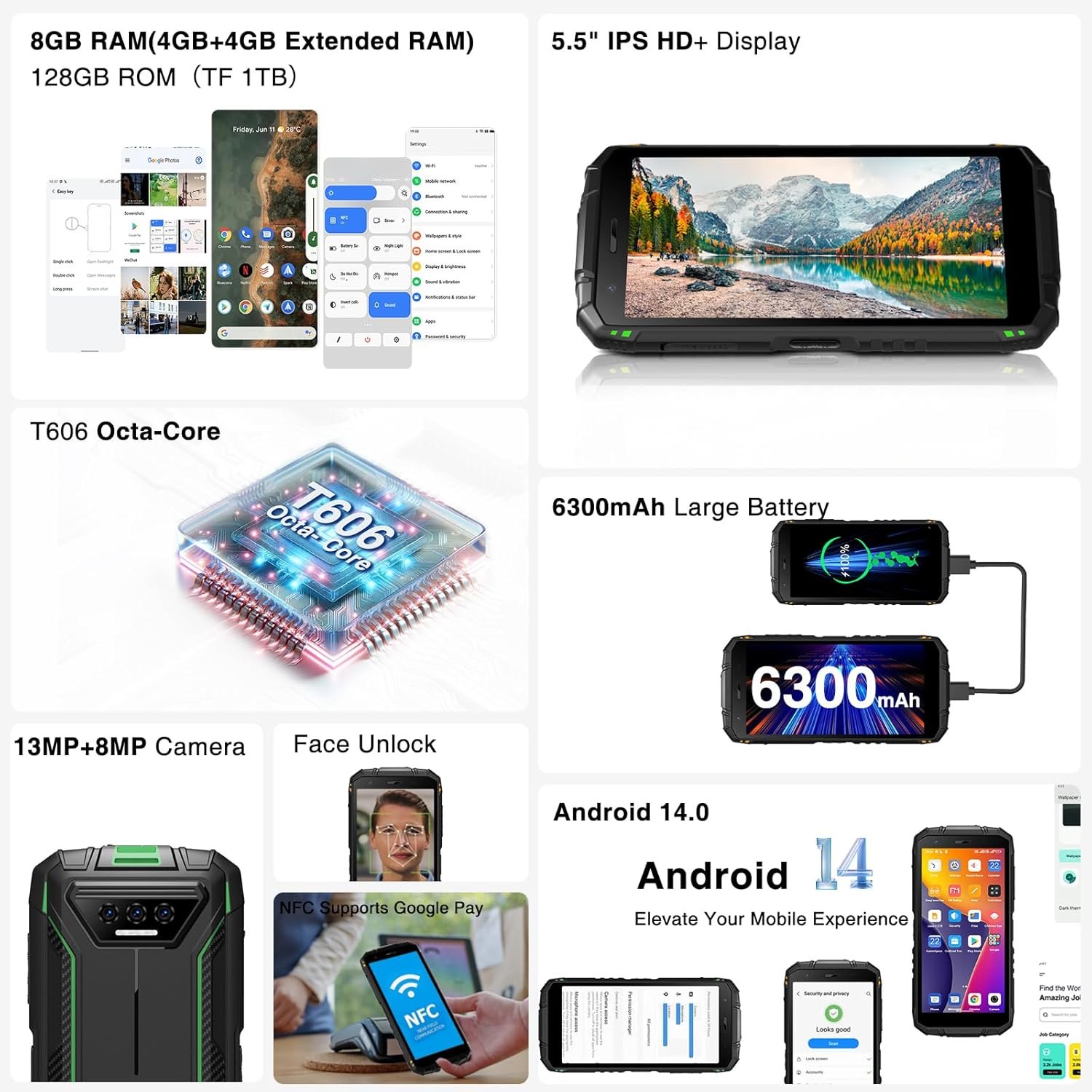 128GB RAM + 1Tb Expandable: DOOGEE S41 PLUS rugged smartphone unlocked features an impressive 8GB RAM and 128GB ROM,This ensures faster and smoother multitasking, allowing you to seamlessly switch between apps without any lag or slowdown.The device is expandable up to 1TB using an SD card. This means you’ll have plenty of room to download games, store important documents, and save precious photos and videos of special moments.