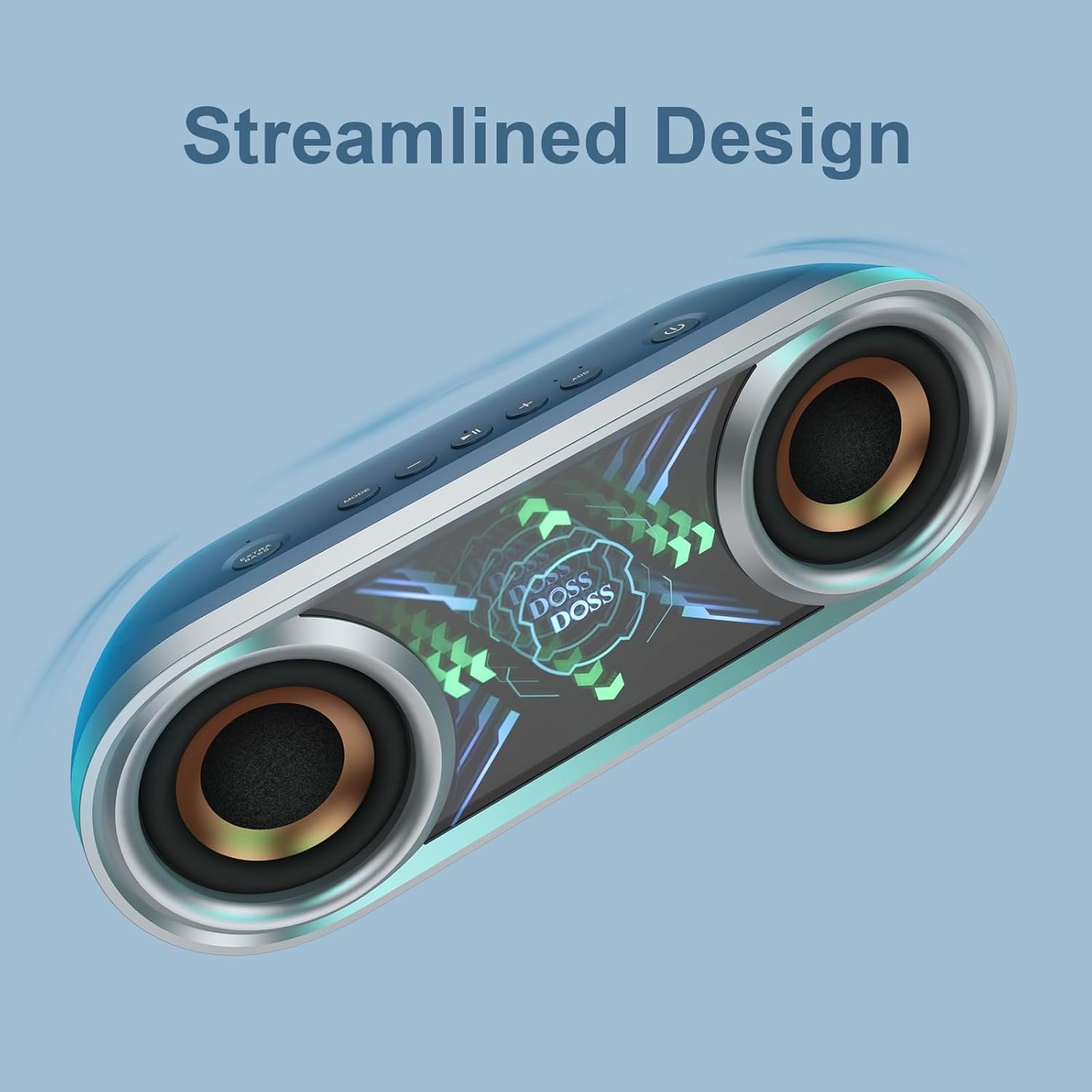 DOSS SoundBox Pro+ P400 Bluetooth Speaker, 50W Stereo Sound with Extra Bass, 26H Playtime, Cool Phantom Mirror Lights, IPX5 Waterproof Speaker for Outdoor, Home, Party, and Electronic Gadgets-Blue