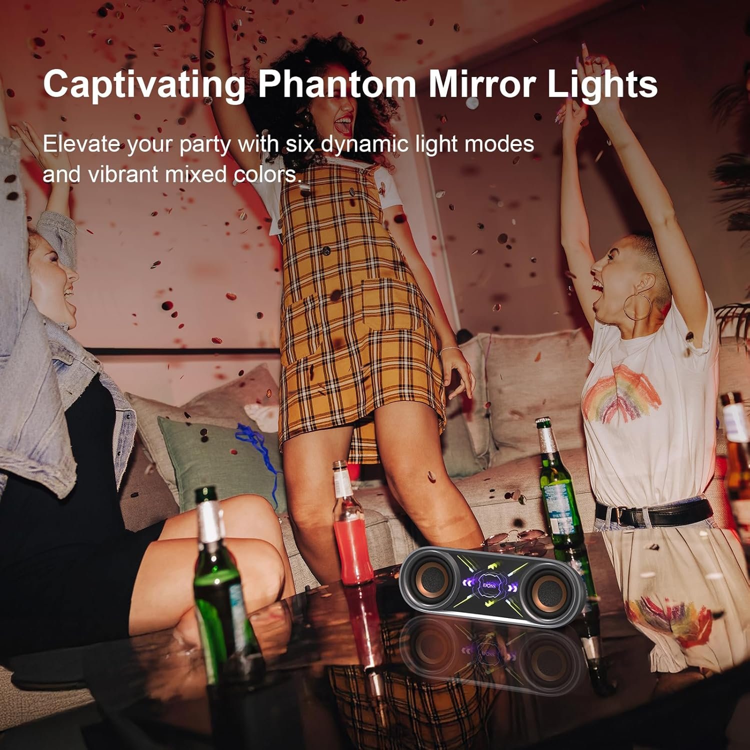 Wireless Stereo Pairing: Pair two SoundBox Pro P400+ wireless speakers for an immersive stereo experience and total 100W Power.And the mesmerizing phantom mirror light show dances in sync with your music, become the life of the party with the ultimate audio-visual experience.