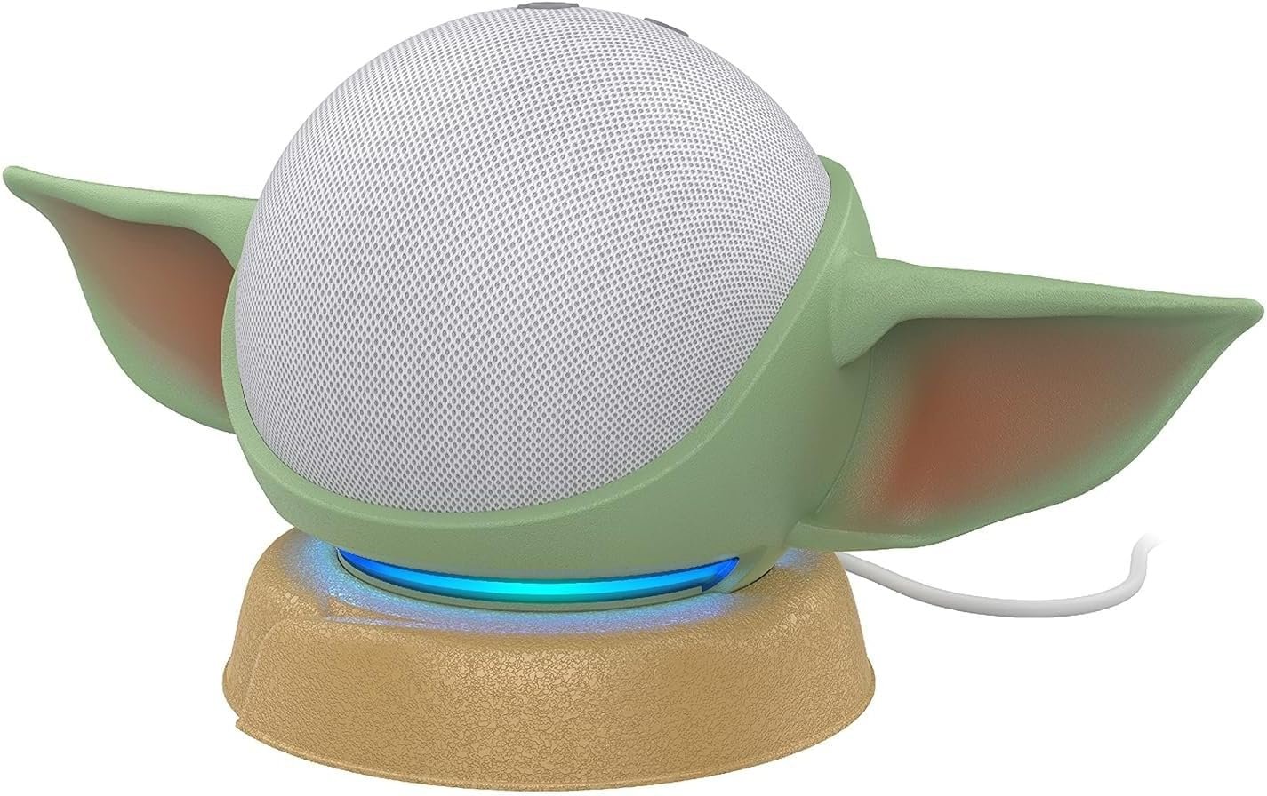 Echo Dot (5th Gen) Bundle: Echo Dot (5th Gen, 2022 release) | Glacier White, and Made for Amazon, featuring The Mandalorian Baby Grogu ™-inspired Stand