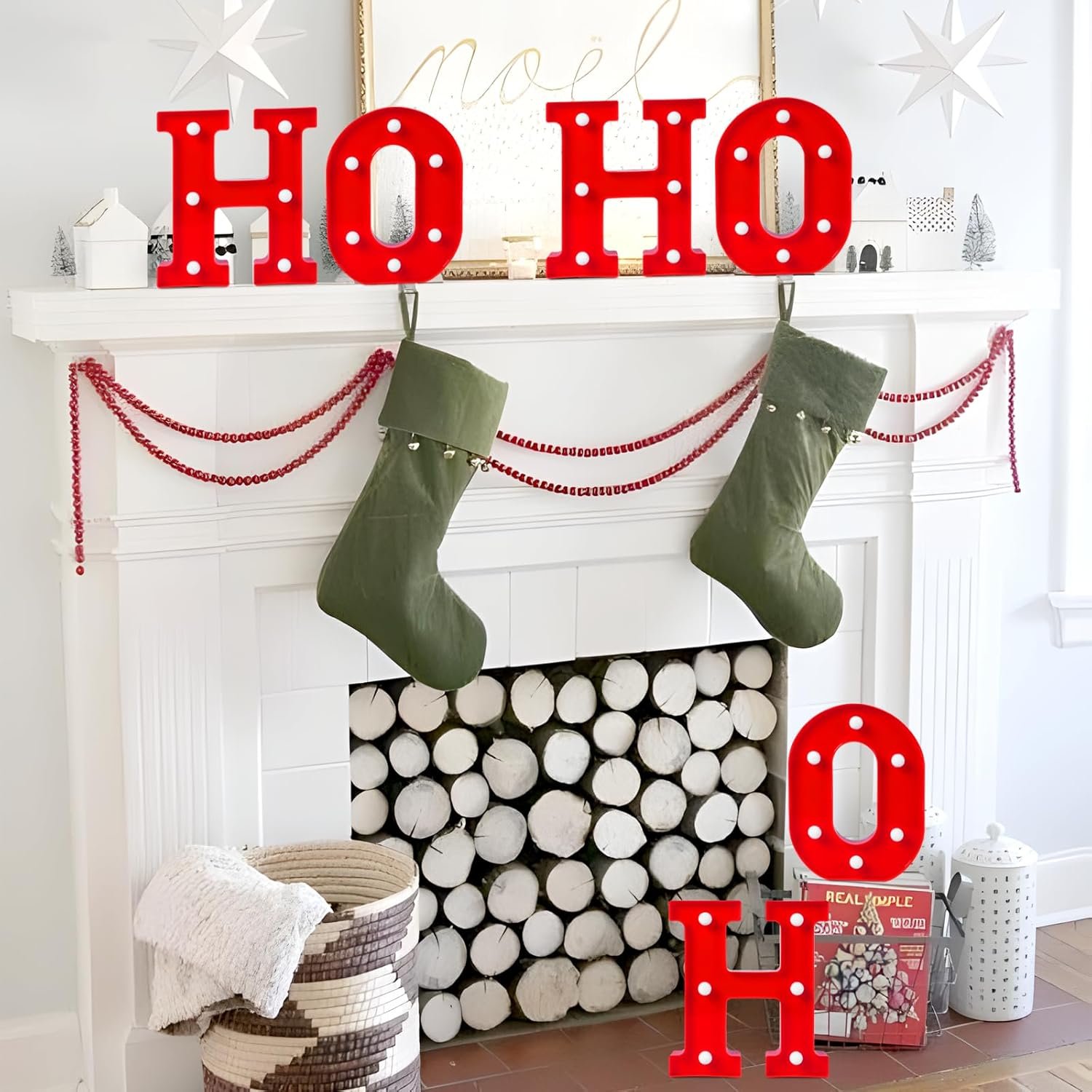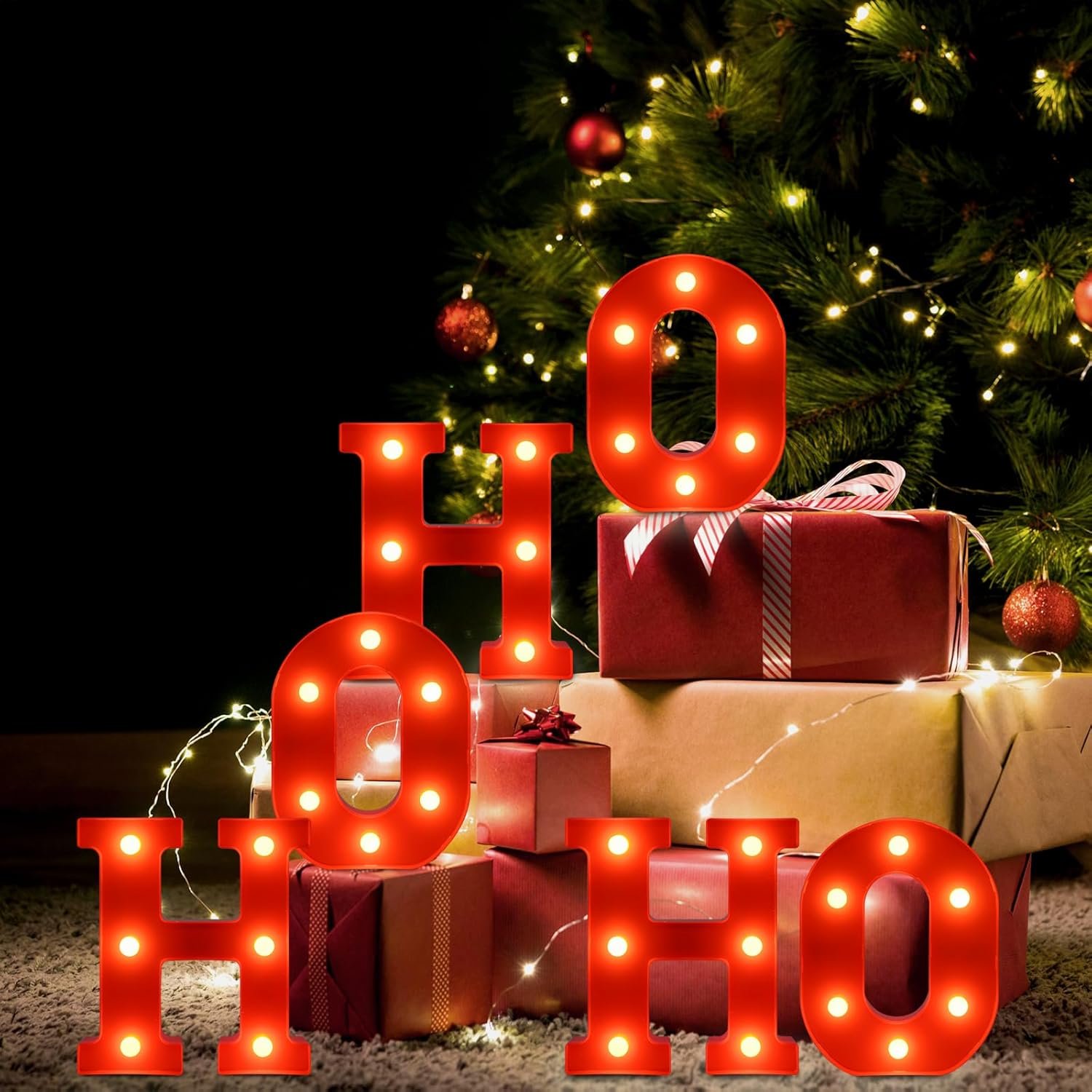 EDYCON Christmas Letter Lights Sign Table Decorations Christmas LED Light up Letters Battery Powered Letter for Home Bar Party Bedroom Tabletop Indoor Decor Gift(HOHOHO)