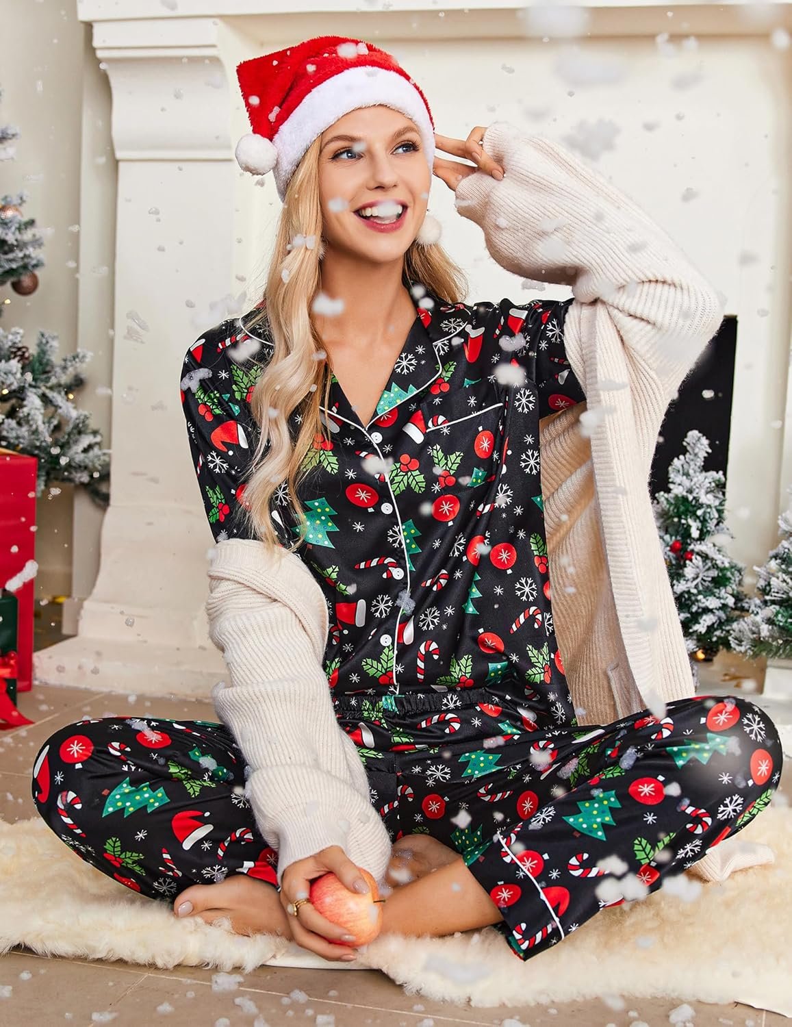 Ekouaer Women’s Fall&Winter Classic Satin Pajama Set