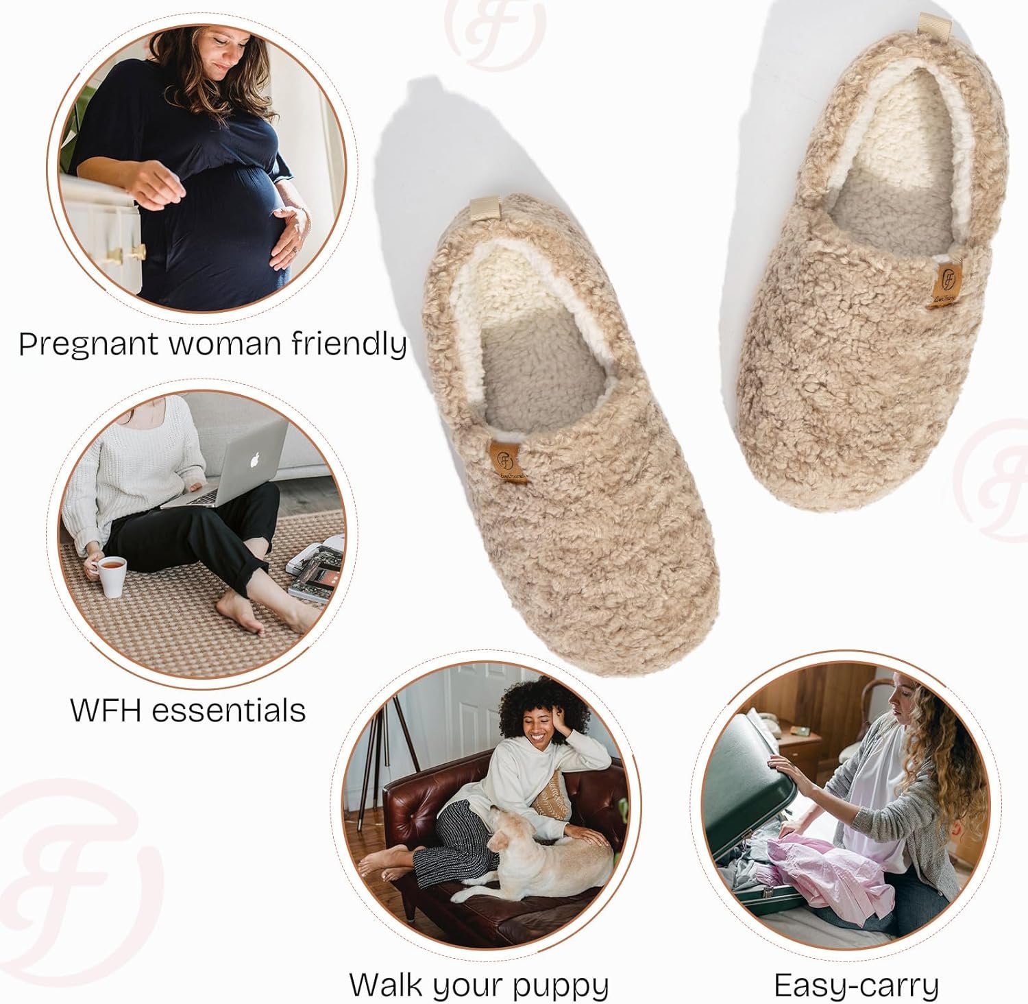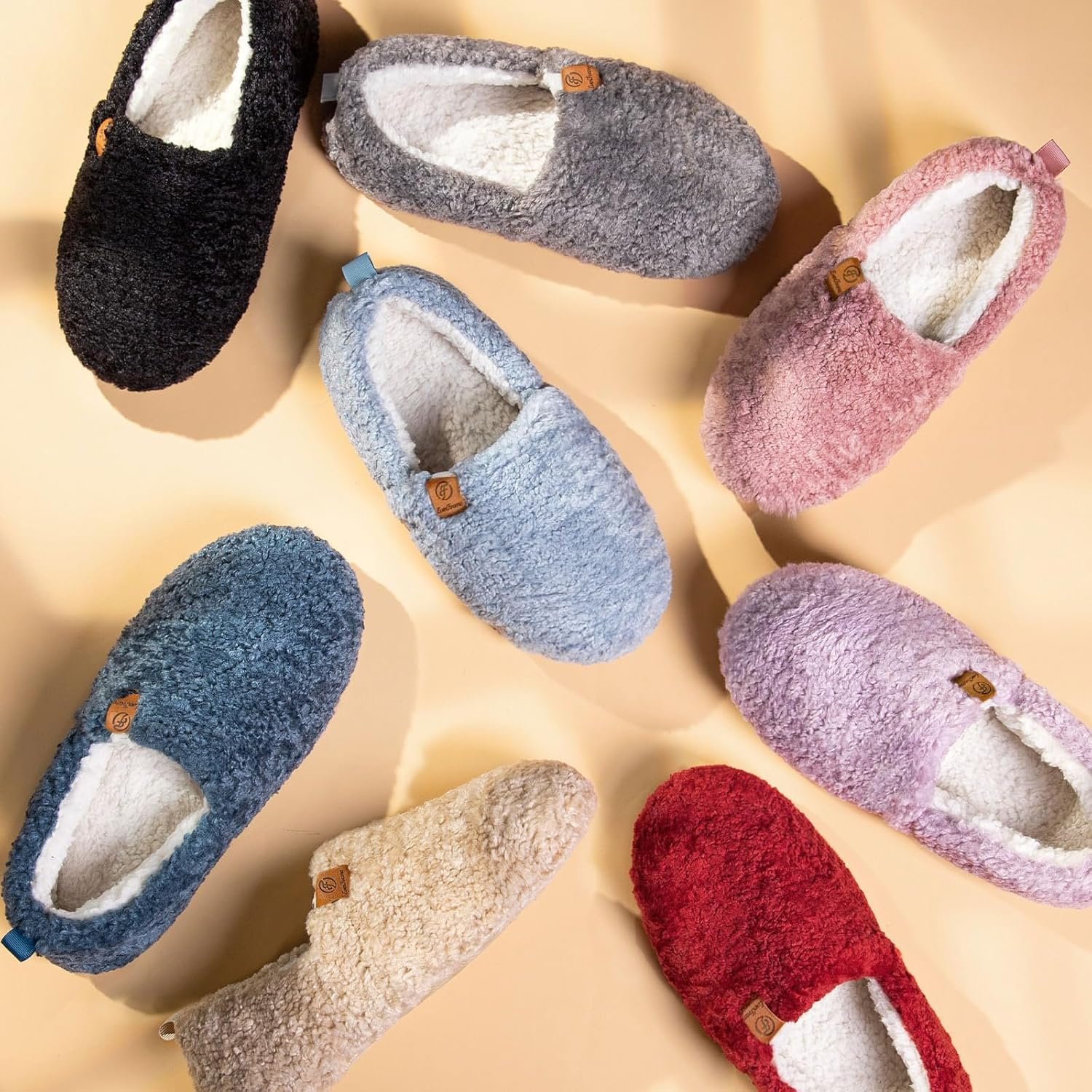 EverFoams Women’s Soft Curly Full Slippers Memory Foam Lightweight House Shoes Cozy Loafer with Polar Fleece Lining