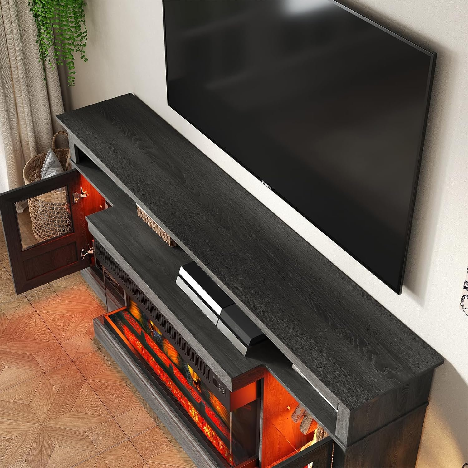 Larger Size for Maximum TV Compatibility: Fireplace entertainment center dimensions: 70″W x 13″D x 31.5″H. Accommodates TVs from 43″ to 80″, making it an excellent long-term investment whether you’re upgrading or future-proofing for a larger TV