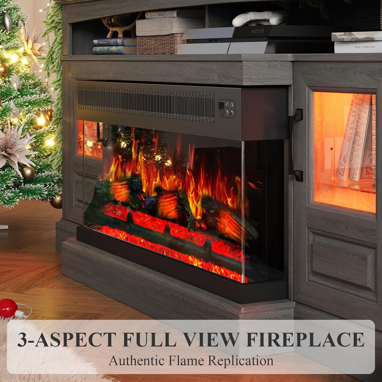 Advanced 3-Sided Fireplace for a Cozy Ambiance: Experience warmth with our 2024 upgraded tv stand with fireplace featuring 3 simulated wood logs and a lava ember bed, harmonized with captivating flame effects for a truly inviting atmosphere