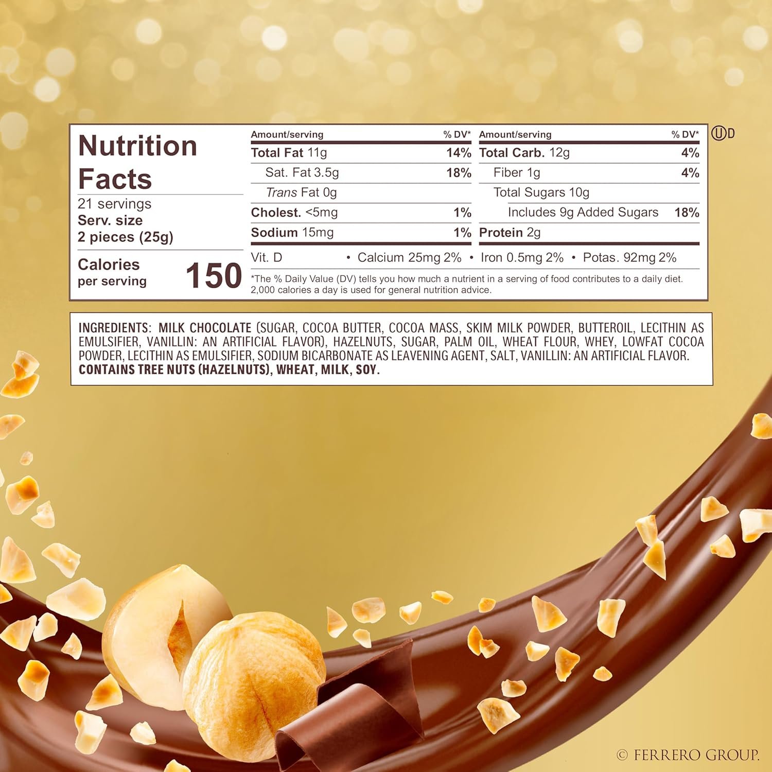 Ferrero Rocher, 42 Count, Gourmet Milk Chocolate Hazelnut, Chocolate Gift Box, Individually Wrapped, 18.5 oz