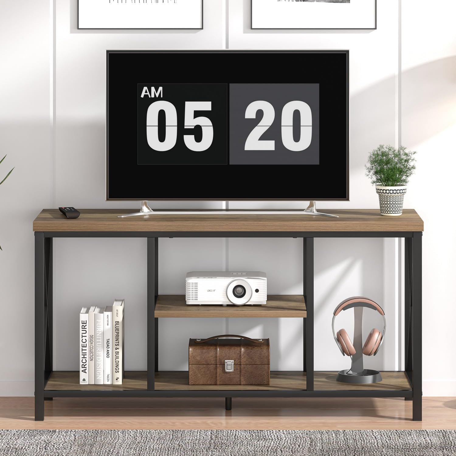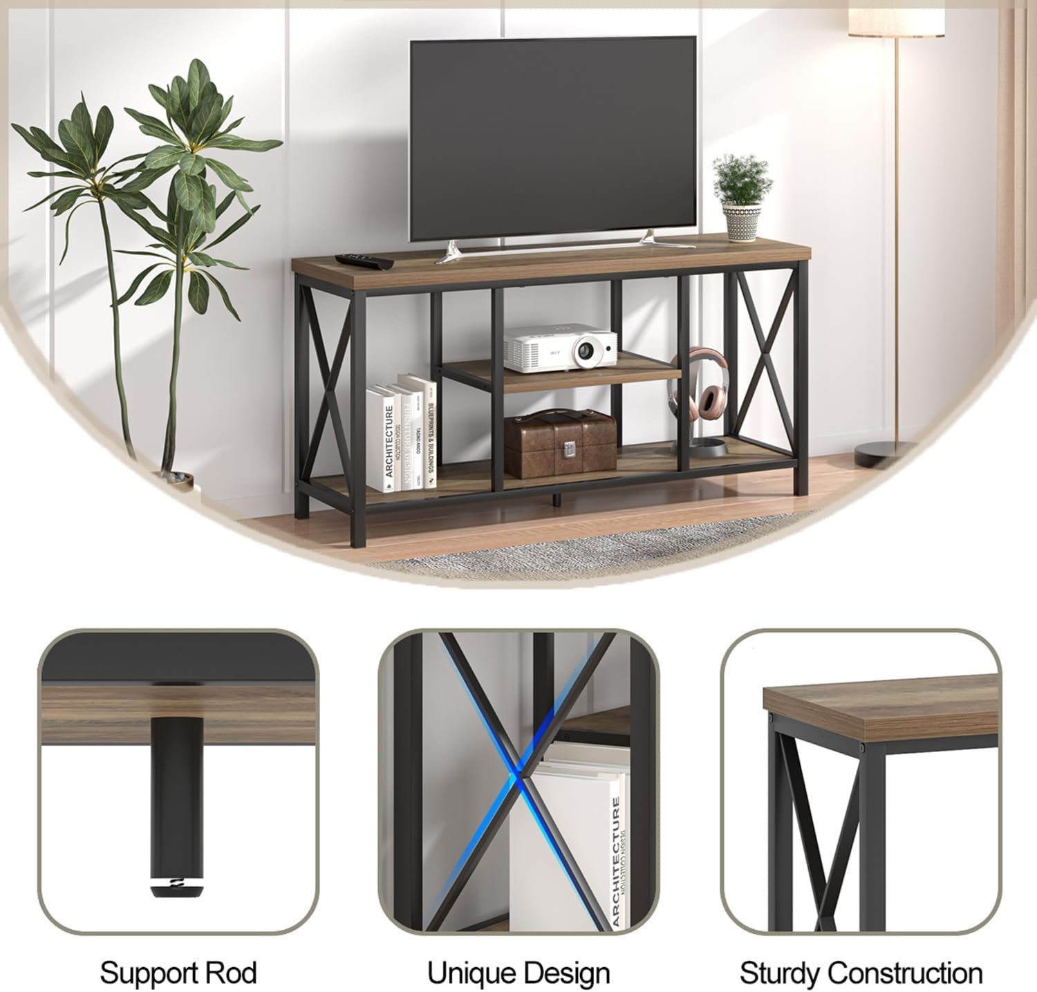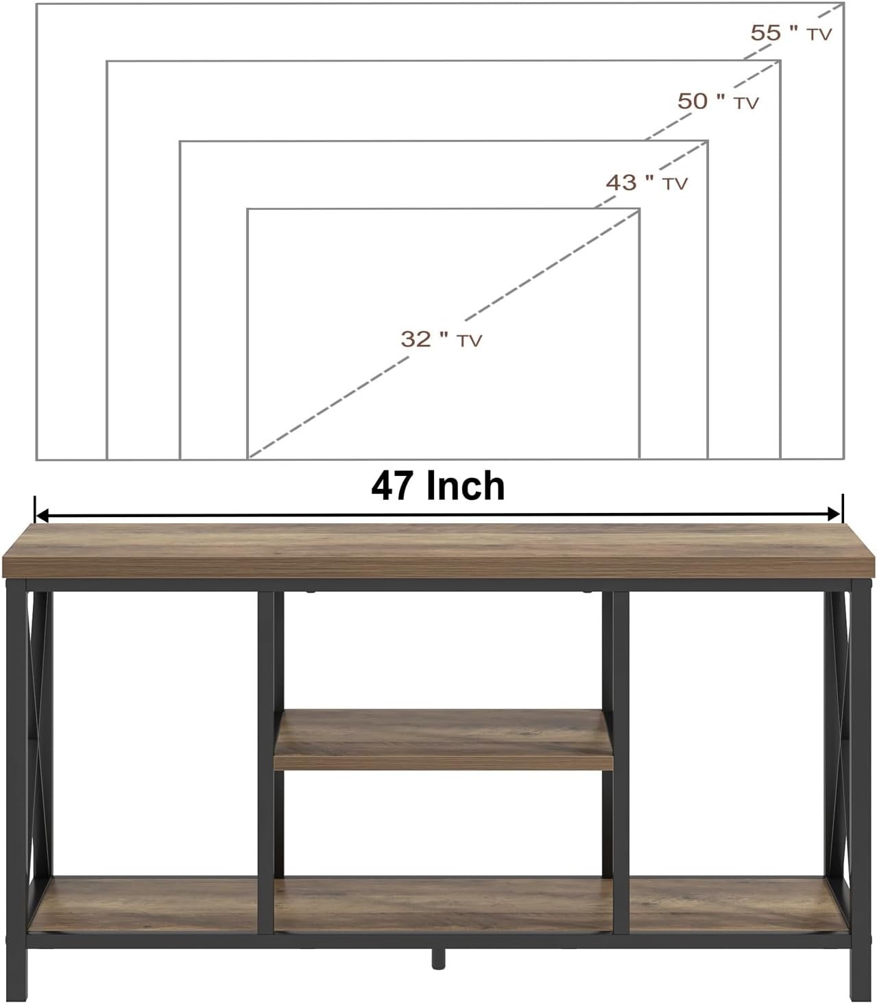 Sturdy Construction: Constructed with a stable X-shaped metal frame and well-crafted shelves to ensure the stability of this entertainment center. A metal tube under the top shelf and an adjusting rod under the bottom shelf ensure high weight capacity, making it long-lasting for use.