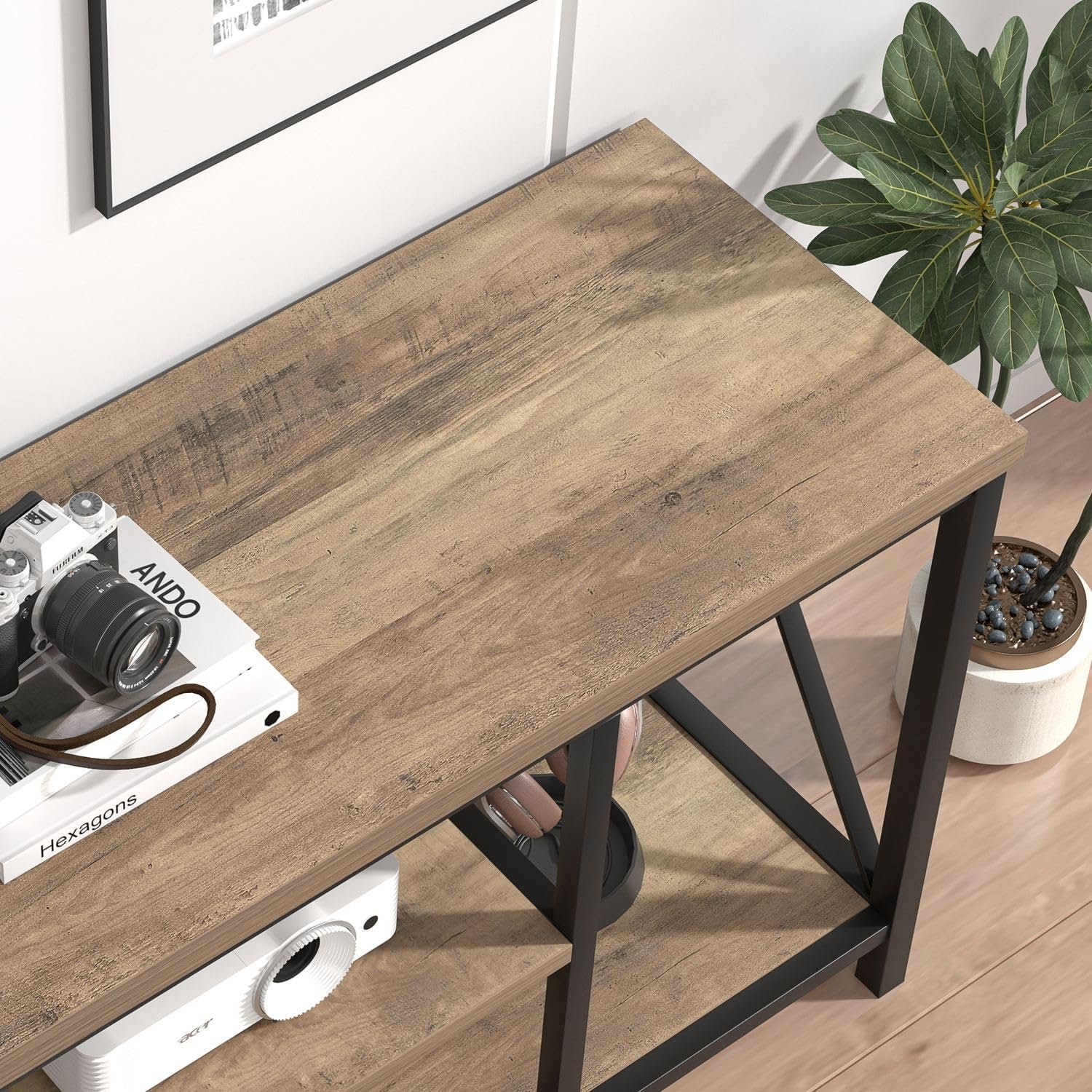 This 47 inch TV stand with storage shelves features a rustic oak wood grain finish, adding natural charm to living room or entertainment room.