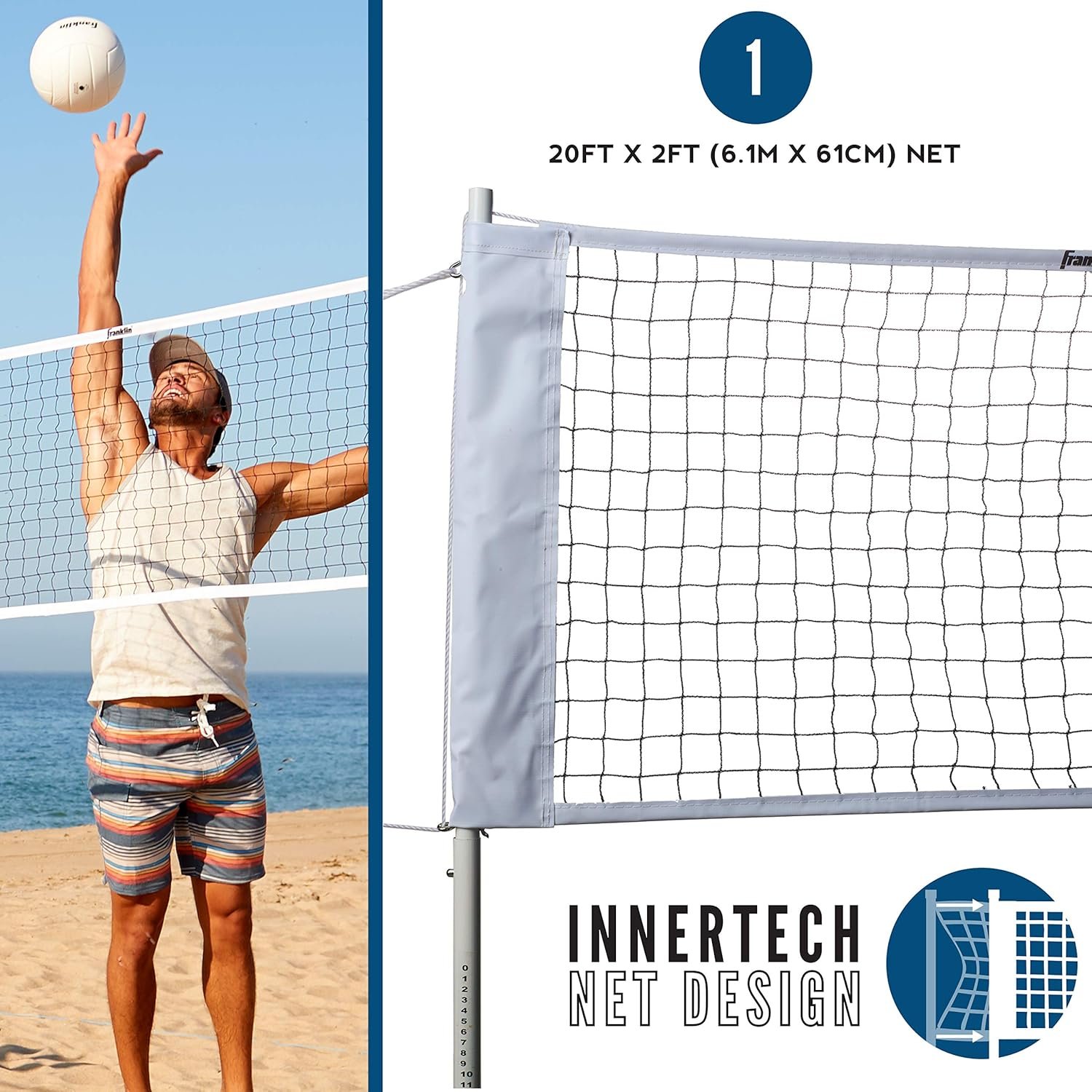 Franklin Sports Outdoor Volleyball Net Sets – Beach + Backyard Portable Volleyball Net with Poles – Complete Outdoor Volleyball Sets with Net + Volleyball Included